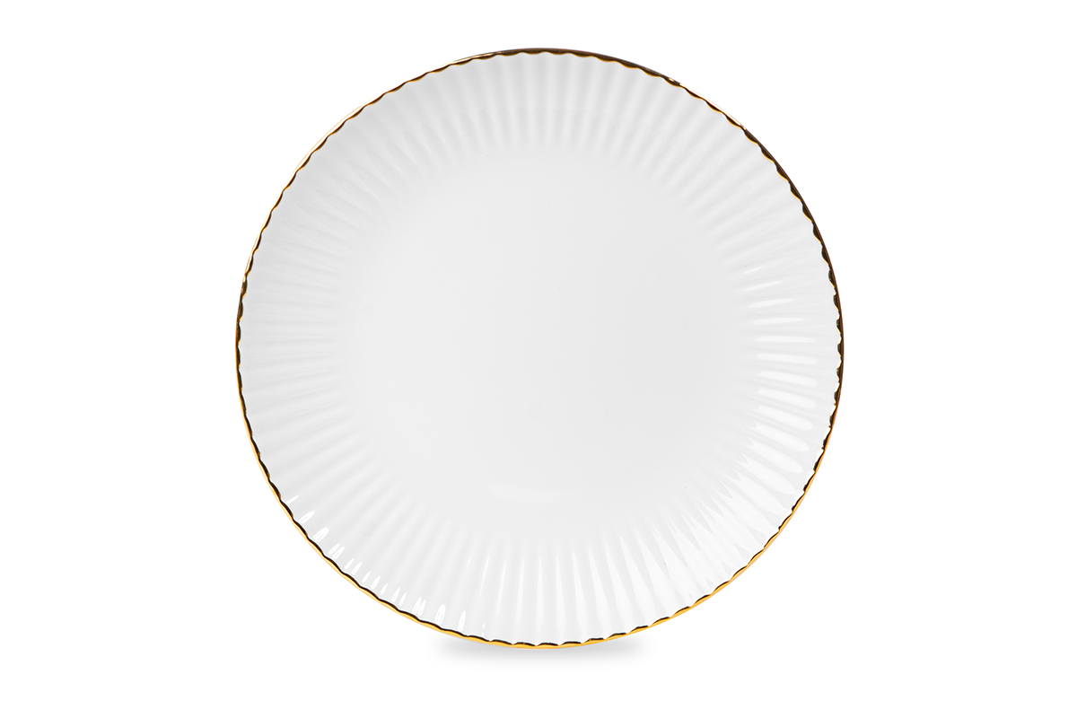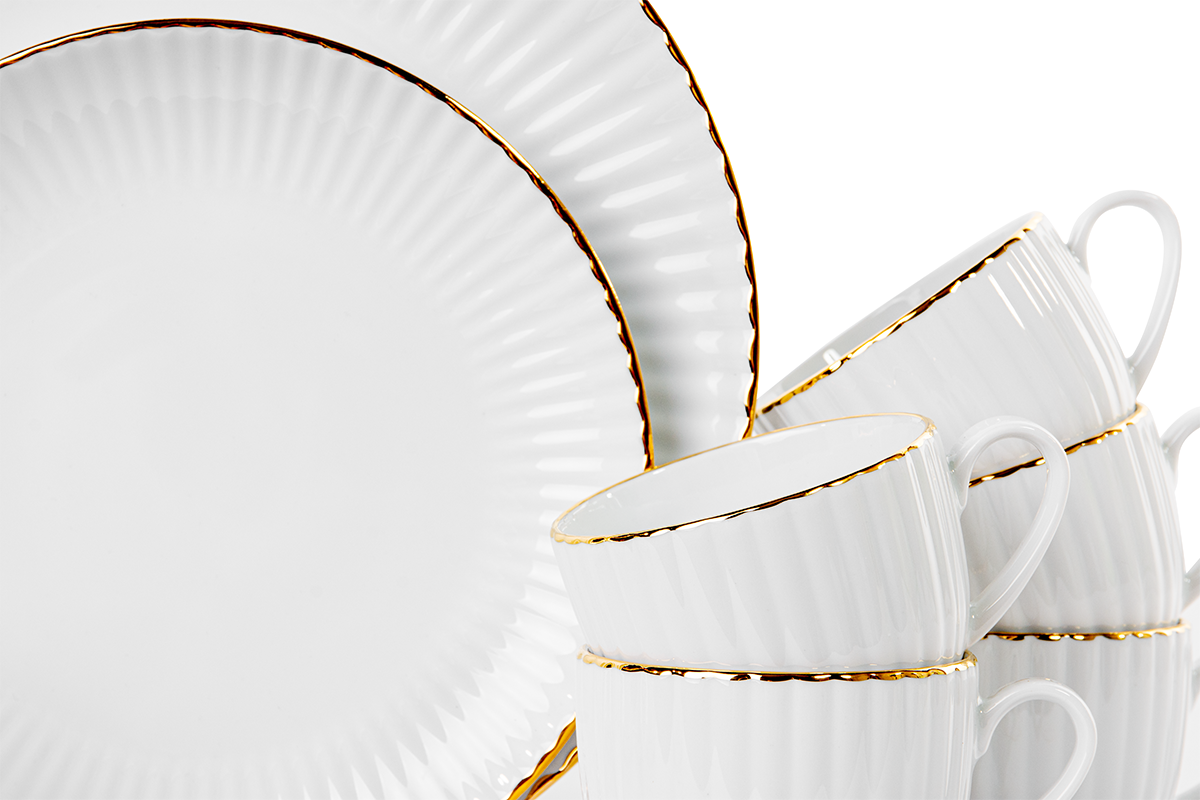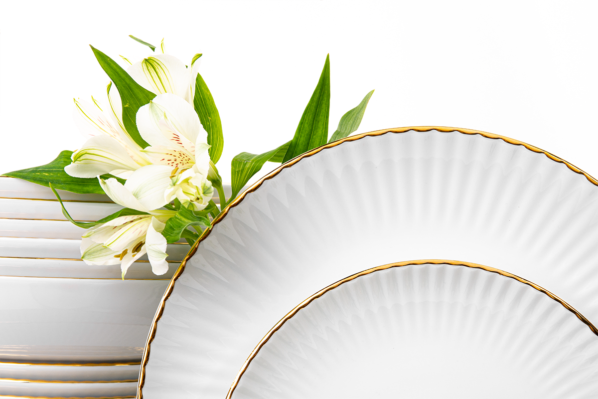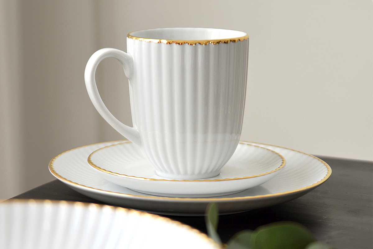 Reliefowa forma kolekcji Daisy przypomina płatki rozkwitającej stokrotki. Tak wdzięczny, kwiatowy motyw potrzebuje wyjątkowej oprawy. W połączeniu z delikatnym, ręcznie wykonanym złotym zdobieniem zaspokaja potrzeby nawet najbardziej wymagających estetów. Wysokie parametry jakościowe sprawiają, że Daisy Gold Line jest nie tylko piękna, ale niezwykle wytrzymała i funkcjonalna. Dzięki temu doda uroku codziennej aranżacji stołowej w domu, jak również w przestrzeni restauracyjnej czy kawiarni.