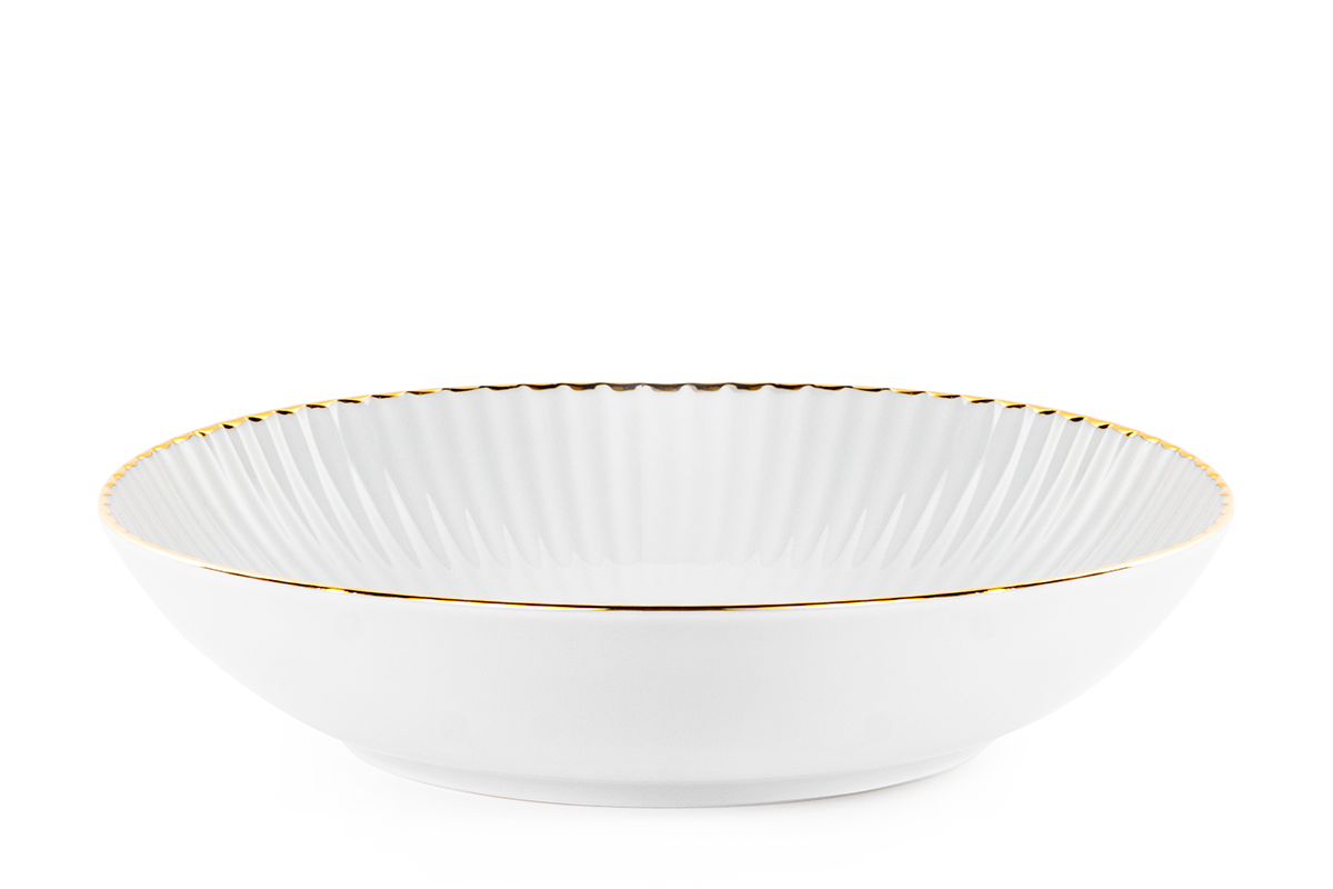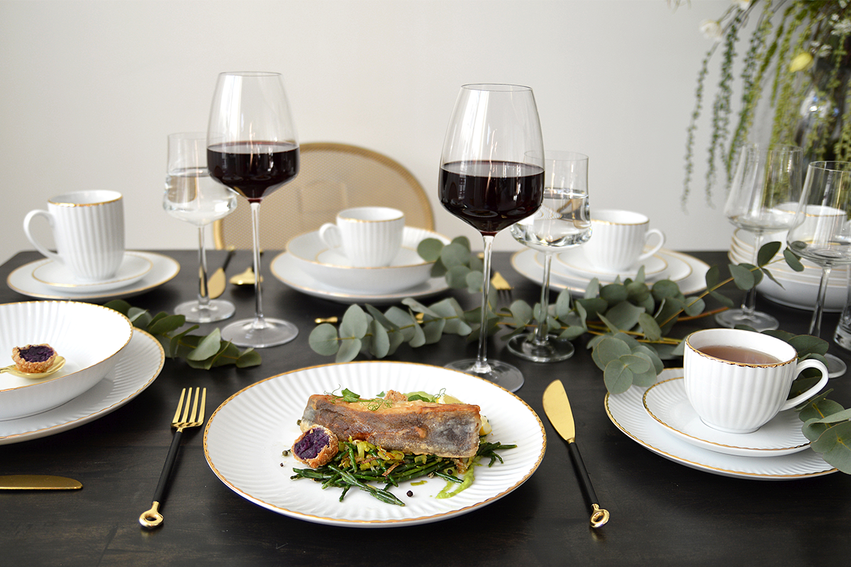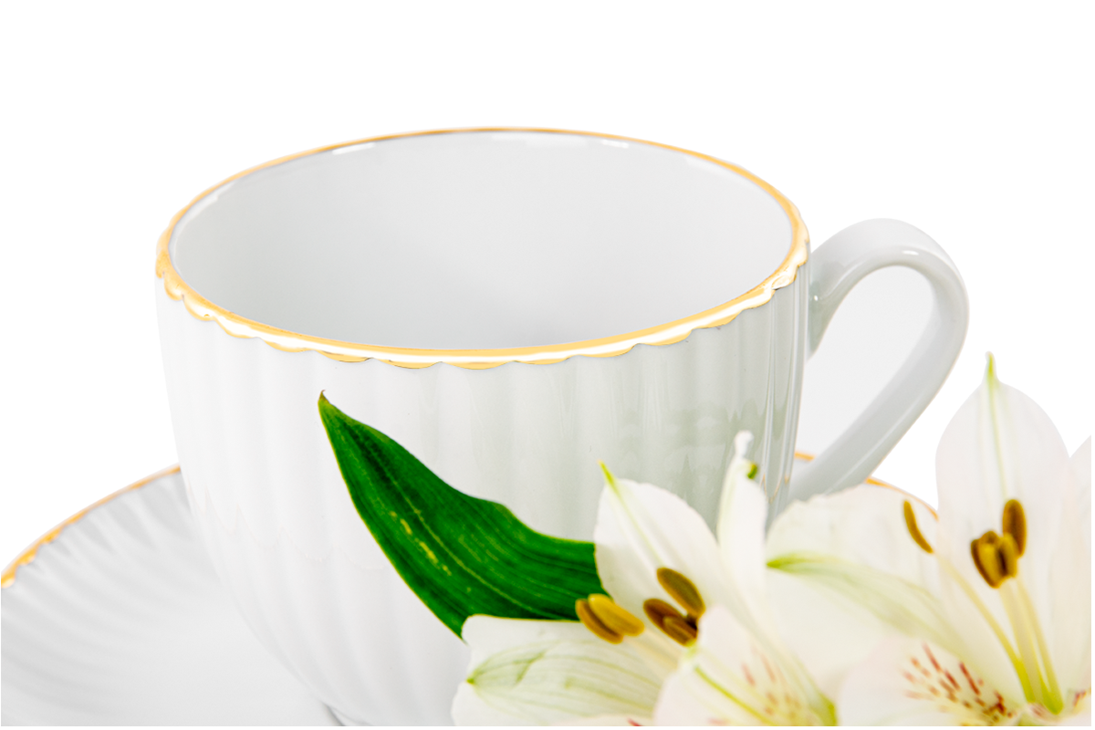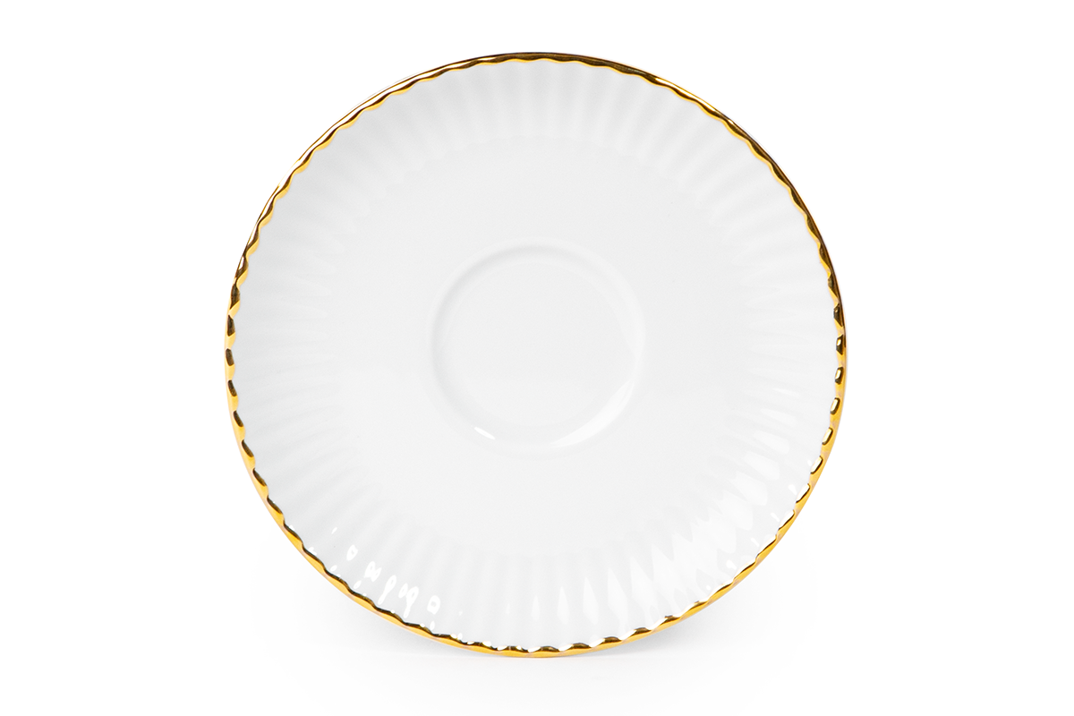 Reliefowa forma kolekcji Daisy przypomina płatki rozkwitającej stokrotki. Tak wdzięczny, kwiatowy motyw potrzebuje wyjątkowej oprawy. W połączeniu z delikatnym, ręcznie wykonanym złotym zdobieniem zaspokaja potrzeby nawet najbardziej wymagających estetów. Wysokie parametry jakościowe sprawiają, że Daisy Gold Line jest nie tylko piękna, ale niezwykle wytrzymała i funkcjonalna. Dzięki temu doda uroku codziennej aranżacji stołowej w domu, jak również w przestrzeni restauracyjnej czy kawiarni.