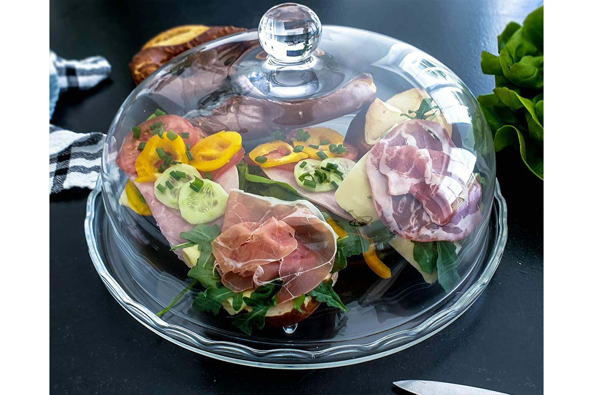 Klasyczna elegancja patery do ciasta w nowoczesnym wydaniu, uatrakcyjni i podkreśli walory Twoich wypieków! Zaprezentuj swoje desery w najlepszy sposób i zatrzymaj ich świeżość błyszczącym kloszem na dłużej. Łam zasady, szklana patera spisze się doskonale również jako oryginalna forma podania pysznych kanapek, bajgli, panini lub różnych innych przystawek na ostro. Taka kompozycja to coś obok czego nie da się przejść obojętnie.
