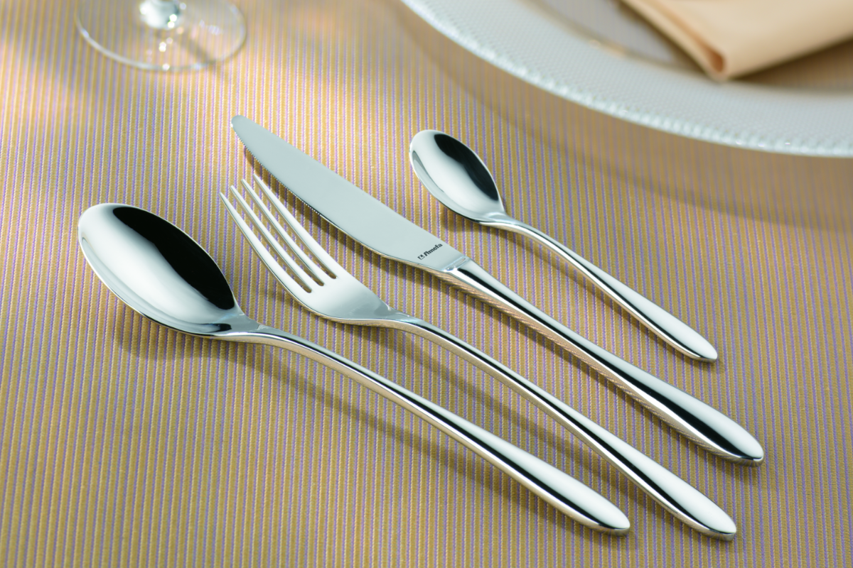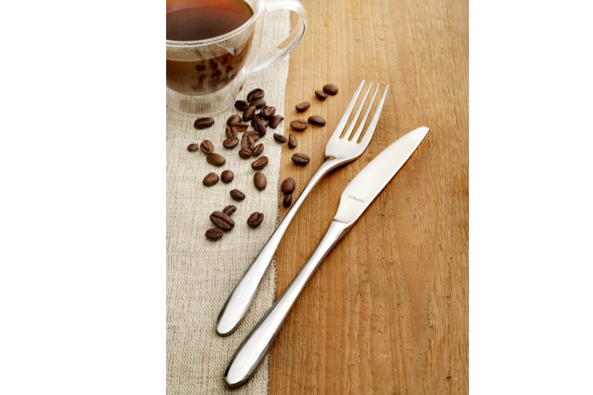 Prosty wzór w nowoczesnej odsłonie. Wysmakowany, subtelny kształt, bez zbędnych ozdobników. Dla sympatyków minimalizmu. Do codziennego użytku oraz na gustowne przyjęcie. Sztućce polerowane.
