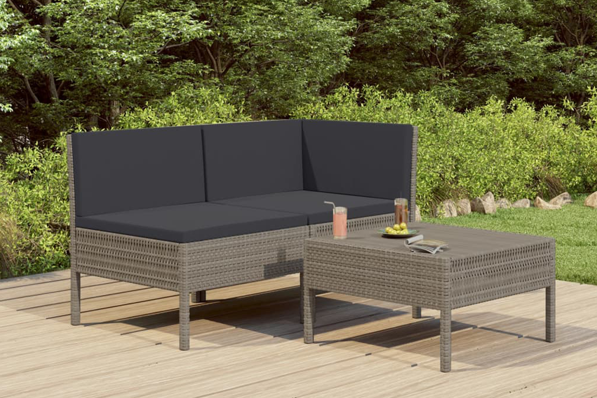 Wyposażone w grube i miękkie poduszki sofy ogrodowe zapewniają najwyższy komfort siedzenia. Łatwe do czyszczenia, poliestrowe pokrowce można zdjąć i wyprać. Stolik kawowy jest idealny do postawienia jedzenia i napojów w zasięgu ręki. Dodatkowo, dzięki lekkiej i modułowej konstrukcji, możesz z łatwością przestawiać meble. Uwaga: zalecamy przykrycie zestawu na czas deszczu, śniegu i mrozu.