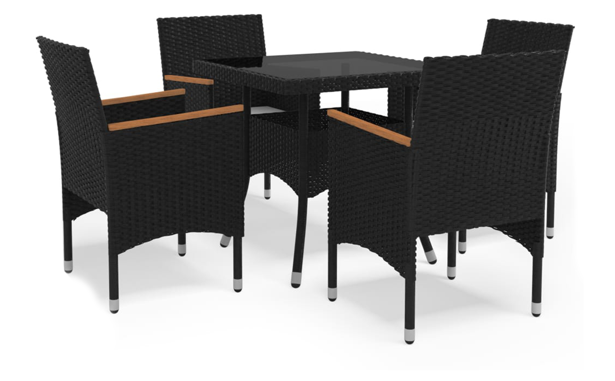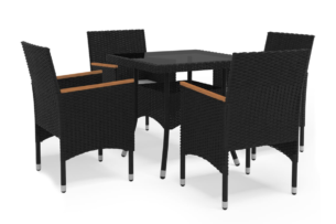 Ciesz się spotkaniami za sprawą naszego 5-częściowego zestawu jadalnianego! Nasz komplet mebli bez problemu pomieści Twoich gości, tworząc jednocześnie ładne miejsce do spożywania posiłków! Ten zestaw mebli wykonany został ze wzmocnionej, stalowej ramy pokrytej stylowym, odpornym na czynniki pogodowe i ręcznie plecionym rattanem PE. Zapewnia solidne podparcie i może być używany przez cały rok.