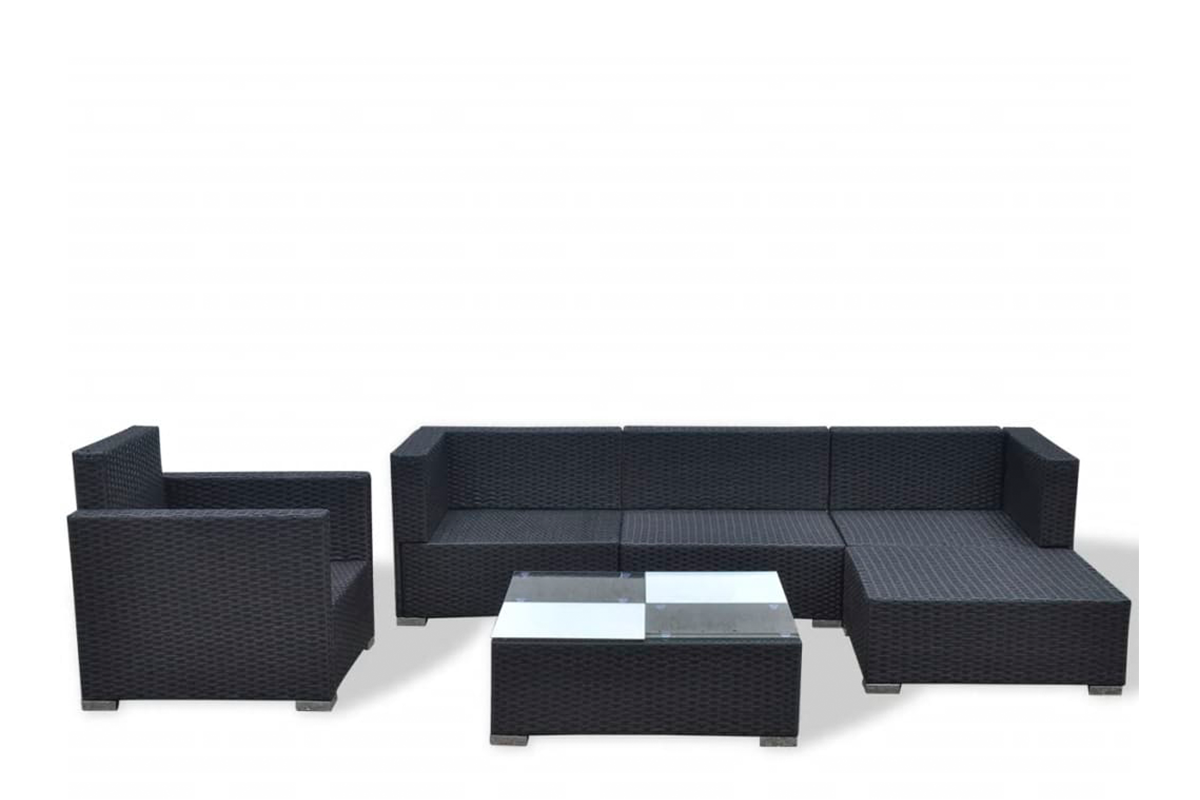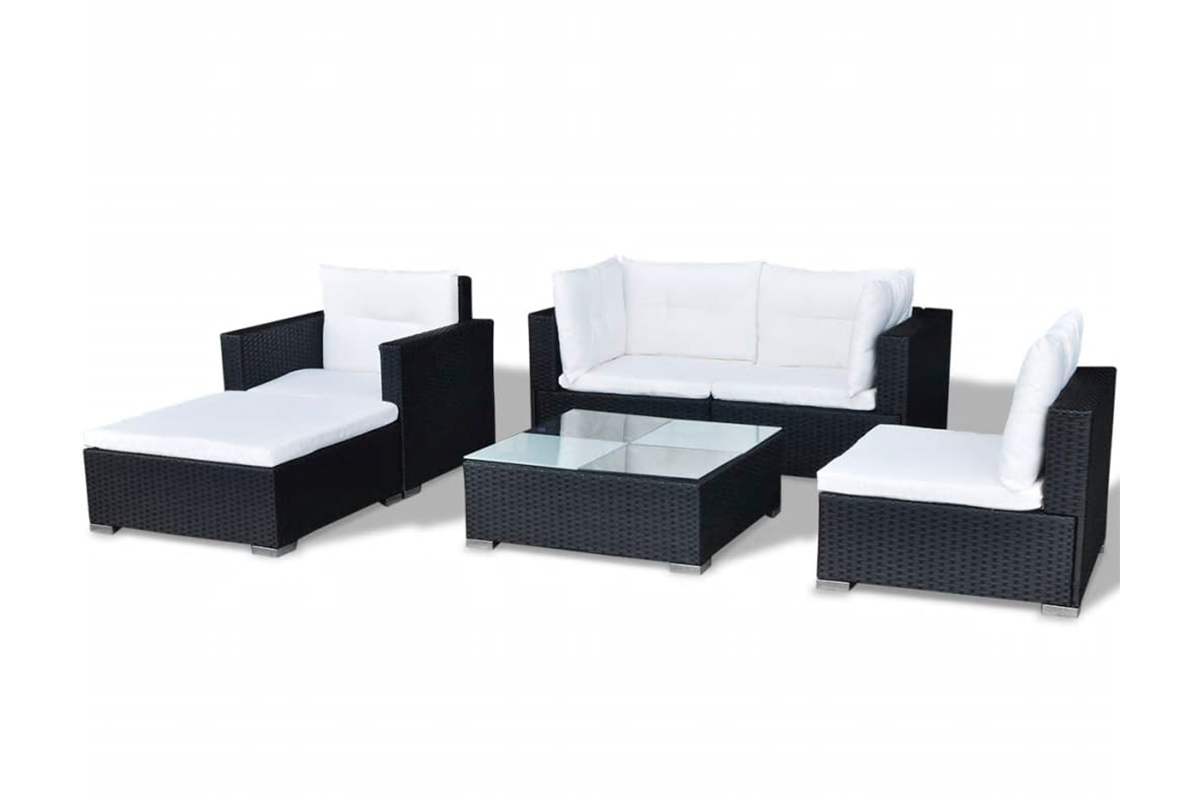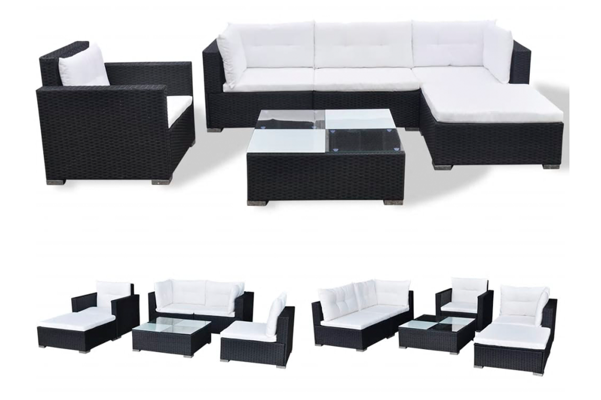 Jego mocna, malowana proszkowo, stalowa rama zapewnia niezwykłą trwałość. Zestaw jest modułowy i lekki, można go więc swobodnie przestawiać i dopasować do każdego otoczenia. Grube, zdejmowane poduszki są bardzo wygodne. W skład przesyłki wchodzą 2 narożnikowe sofy, 1 środkowa sofa, 1 pojedyncza sofa, 1 otomana, 1 stolik, 5 poduszek na siedziska i 6 poduszek na oparcia.
