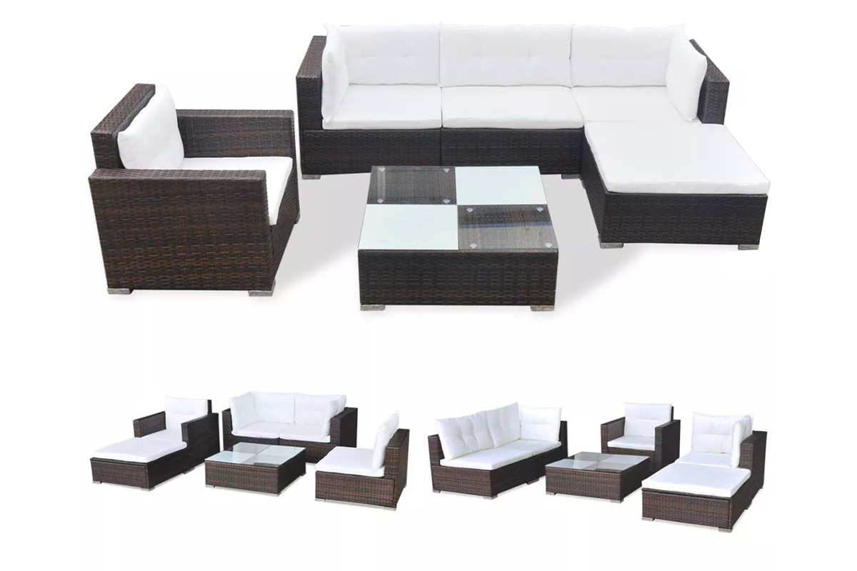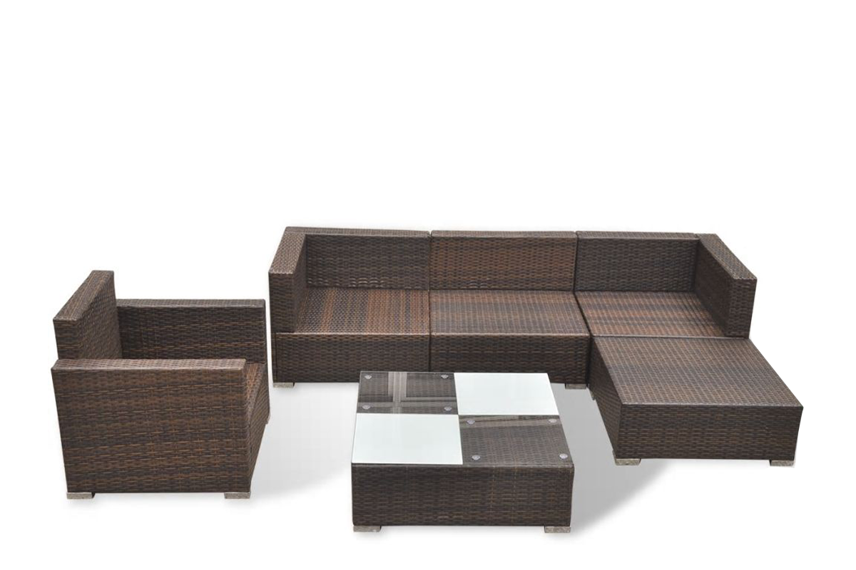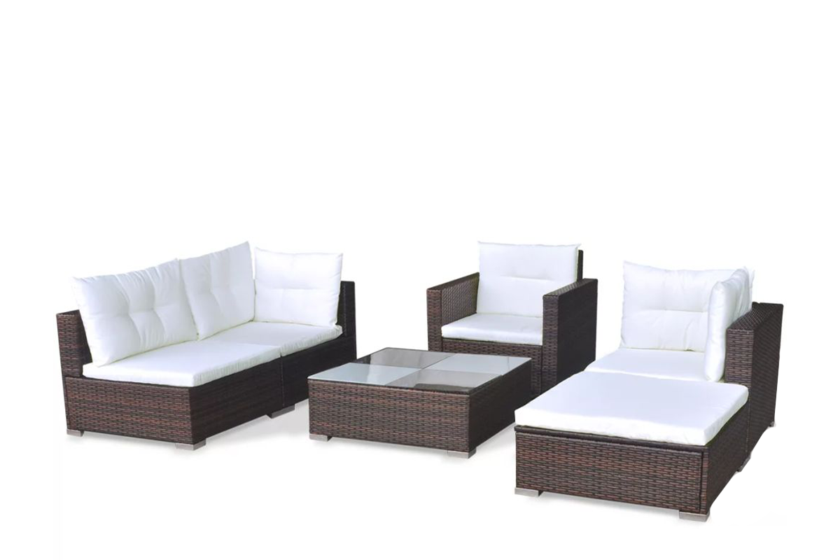 Jego mocna, malowana proszkowo, stalowa rama zapewnia niezwykłą trwałość. Zestaw jest modułowy i lekki, można go więc swobodnie przestawiać i dopasować do każdego otoczenia. Grube, zdejmowane poduszki są bardzo wygodne. W skład przesyłki wchodzą 2 narożnikowe sofy, 1 środkowa sofa, 1 pojedyncza sofa, 1 otomana, 1 stolik, 5 poduszek na siedziska i 6 poduszek na oparcia.