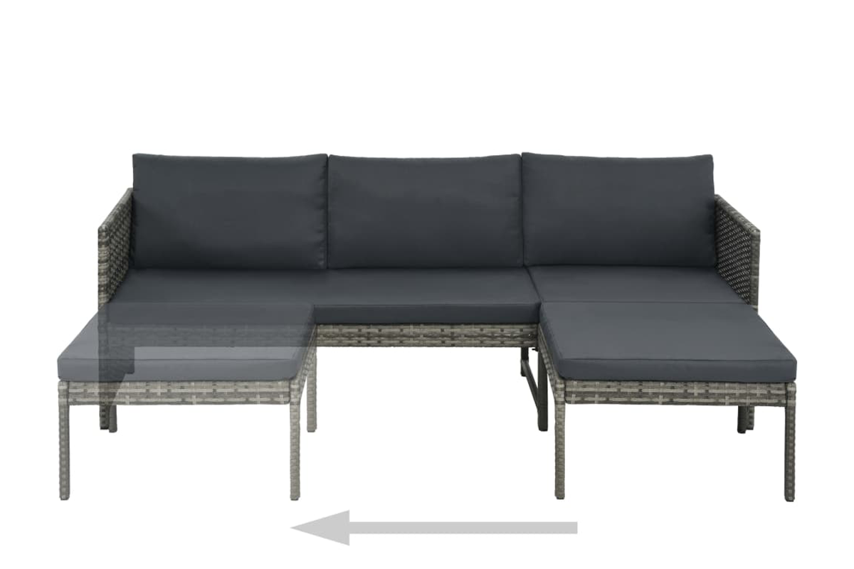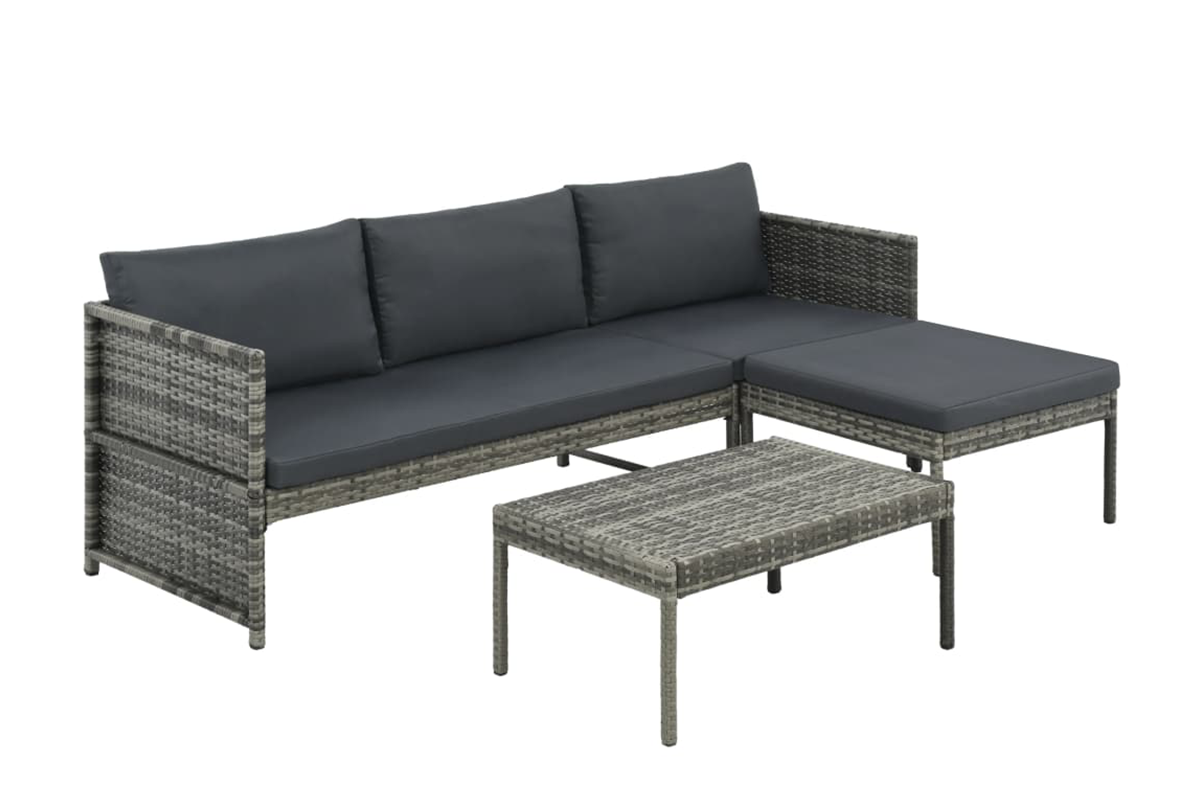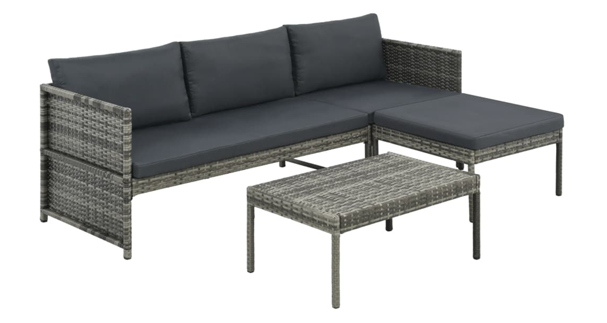 Meble mają mocną, krytą proszkowo ramę ze stali, która jest bardzo wytrzymała. Są lekkie, dzięki czemu można je bez trudu przedstawiać. Stołek można ustawić w dowolnym miejscu, w zależności od potrzeb. Grube, zdejmowane poduszki na siedziska i oparcia zostały dołączone do kompletu, aby zapewnić maksymalny komfort. Å_x0081_atwe w czyszczeniu, poliestrowe powłoczki z ukrytymi suwakami można zdjąć i wyprać, jeśli zajdzie taka potrzeba. Nasz modułowy komplet mebli wypoczynkowych można przestawiać, aby pasował do każdego otoczenia. W skład przesyłki wchodzi 1 trzyosobowa sofa, 1 stołek, 1 stolik kawowy, 3 poduszki na siedziska i 3 poduszki na oparcia. Uwaga: zalecamy przykrycie zestawu na czas deszczu, śniegu i mrozu.