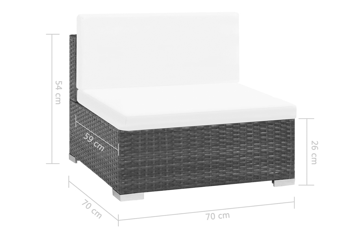 - Wymiary: 70 x 70 x 54 cm (szer. x gł. x wys.) (środkowa sofa)