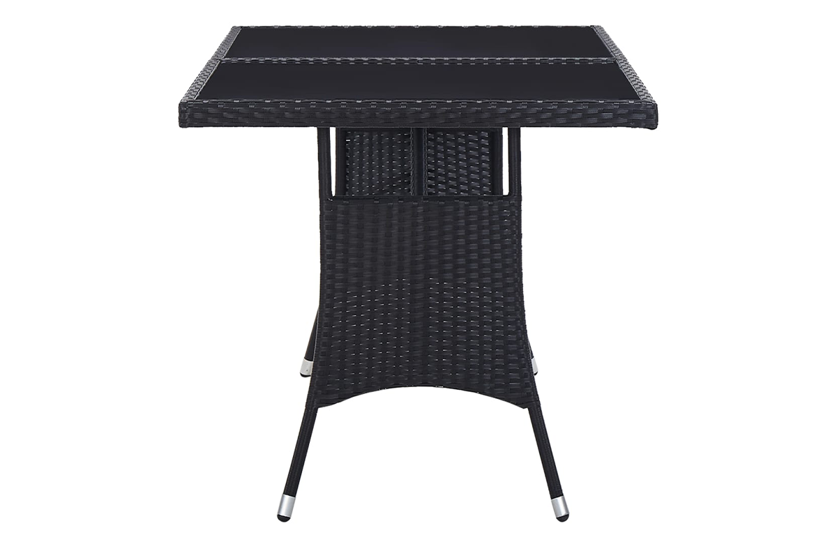 Elegancki zestaw mebli polirattanowych będzie przyciągał uwagę w ogrodzie, na tarasie lub patio. Zestaw wykonany został z odpornego na czynniki pogodowe i wodę rattanu PE oraz szkła na blacie. Jest łatwy do czyszczenia, mocny i odpowiedni do codziennego użytkowania. Stalowa rama sprawia, że stół i krzesła są stabilne i trwałe. Dzięki lekkiej konstrukcji wszystkie elementy można łatwo przestawiać.