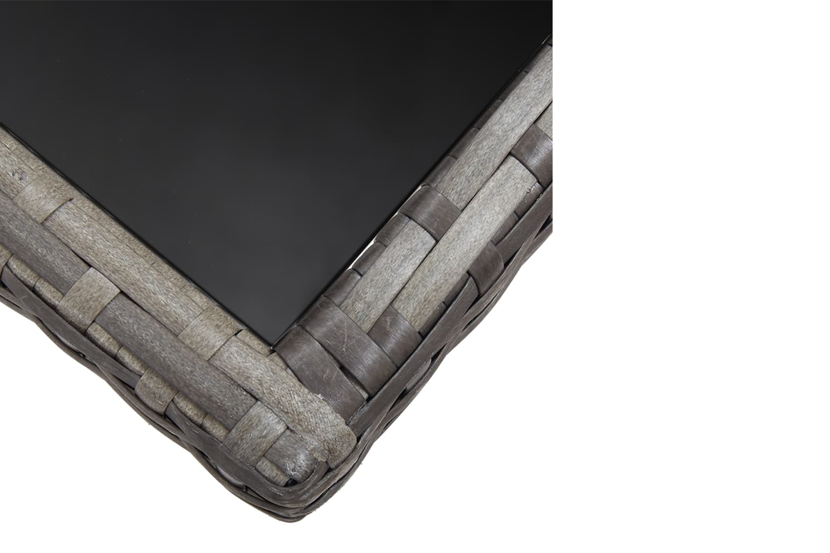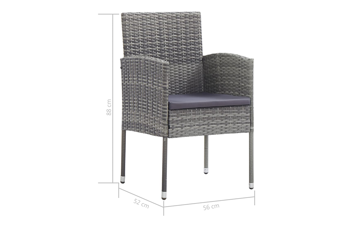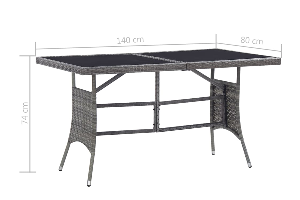 Elegancki zestaw mebli polirattanowych będzie przyciągał uwagę w ogrodzie, na tarasie lub patio. Zestaw wykonany został z odpornego na czynniki pogodowe i wodę rattanu PE oraz szkła na blacie. Jest łatwy do czyszczenia, mocny i odpowiedni do codziennego użytkowania. Stalowa rama sprawia, że stół i krzesła są stabilne i trwałe. Dzięki lekkiej konstrukcji wszystkie elementy można łatwo przestawiać.