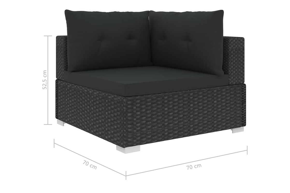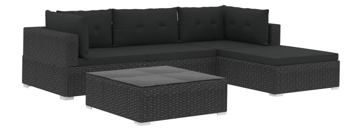 Jego mocna, malowana proszkowo, stalowa rama zapewnia niezwykłą trwałość. Zestaw jest modułowy i lekki, można go więc swobodnie przestawiać i dopasować do każdego otoczenia. Grube, zdejmowane poduszki są bardzo wygodne. Zawartość przesyłki: 2 sofy narożne, 1 sofa środkowa, 1 puf, 1 stolik kawowy, 4 poduszki na siedziska oraz 5 poduszek na oparcia. Uwaga: zalecamy przykrycie zestawu na czas deszczu, śniegu i mrozu.
