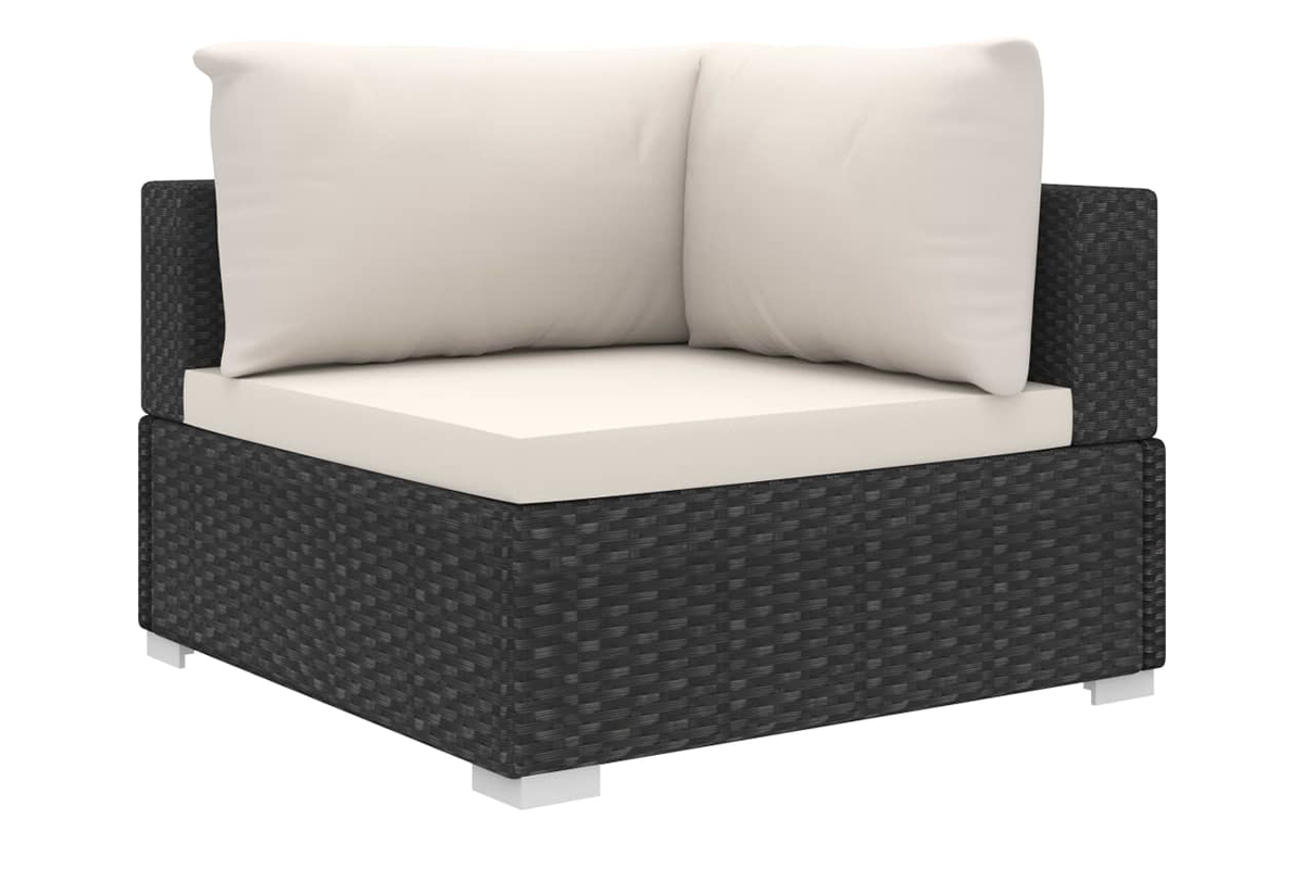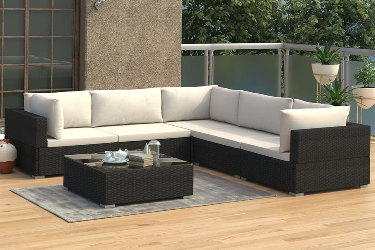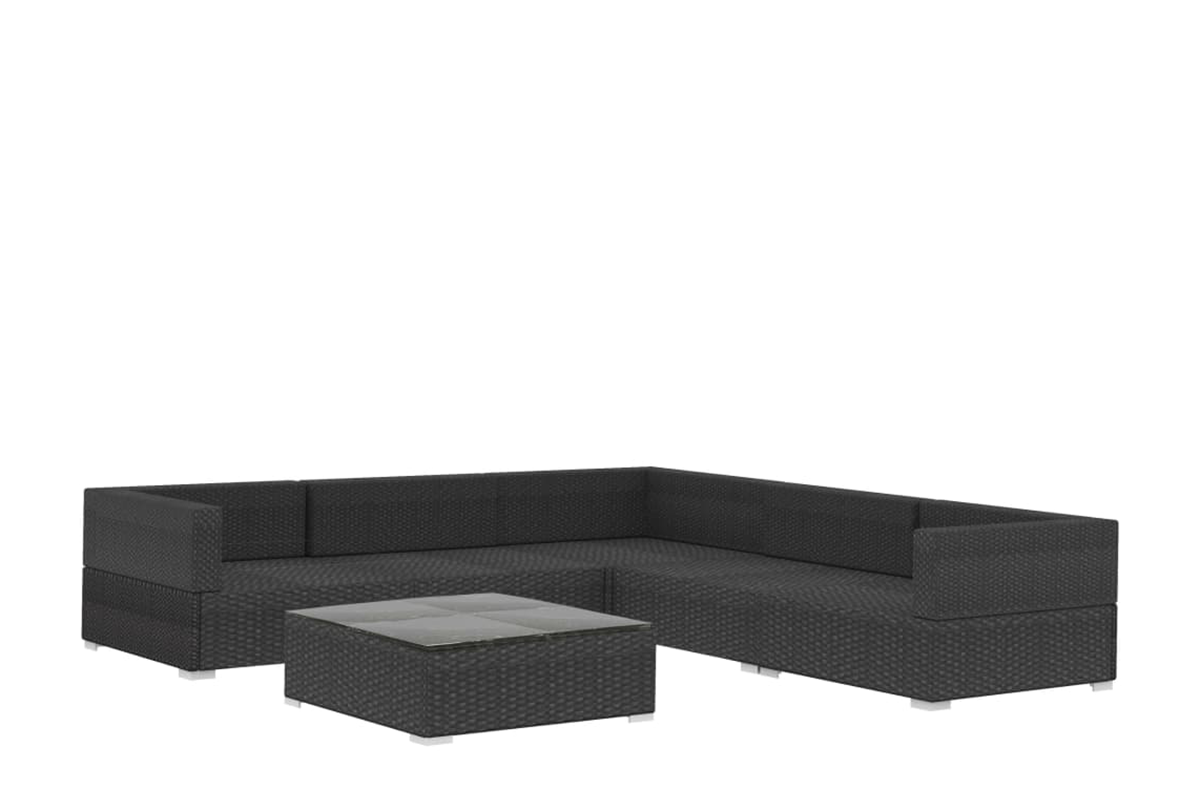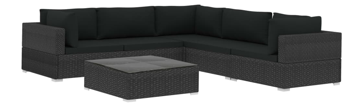 Jego mocna, malowana proszkowo, stalowa rama zapewnia niezwykłą trwałość. Zestaw jest modułowy i lekki, można go więc swobodnie przestawiać i dopasować do każdego otoczenia. Grube, zdejmowane poduszki są bardzo wygodne. Zawartość przesyłki: 3 sofy narożne, 2 sofy środkowe, 1 stolik kawowy, 5 poduszek na siedziska oraz 8 poduszek na oparcia. Uwaga: zalecamy przykrycie zestawu na czas deszczu, śniegu i mrozu.