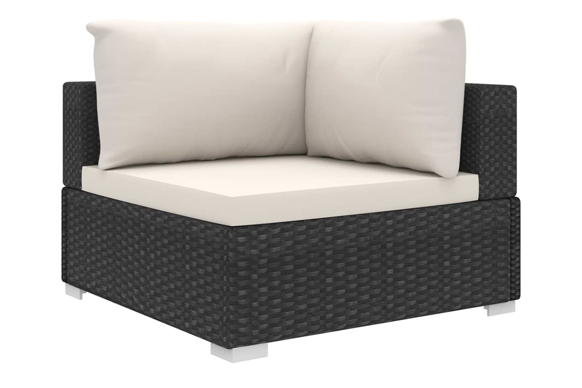 Jego mocna, malowana proszkowo, stalowa rama zapewnia niezwykłą trwałość. Zestaw jest modułowy i lekki, można go więc swobodnie przestawiać i dopasować do każdego otoczenia. Grube, zdejmowane poduszki są bardzo wygodne. Zawartość przesyłki: 1 sofa narożna, 1 sofa środkowa, 1 podnóżek, 1 stolik kawowy, 3 poduszki na siedziska oraz 3 poduszki na oparcia. Uwaga: zalecamy przykrycie zestawu na czas deszczu, śniegu i mrozu.