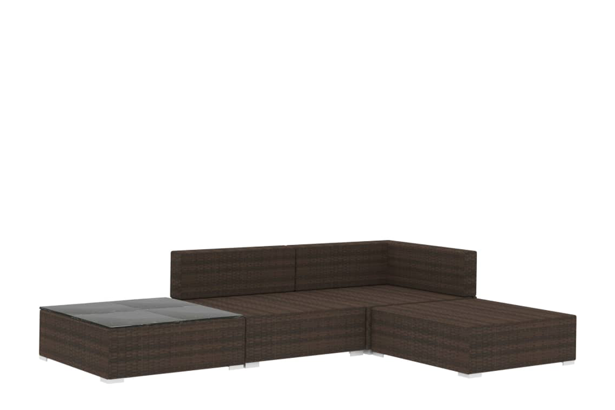 Jego mocna, malowana proszkowo, stalowa rama zapewnia niezwykłą trwałość. Zestaw jest modułowy i lekki, można go więc swobodnie przestawiać i dopasować do każdego otoczenia. Grube, zdejmowane poduszki są bardzo wygodne. Zawartość przesyłki: 1 sofa narożna, 1 sofa środkowa, 1 podnóżek, 1 stolik kawowy, 3 poduszki na siedziska oraz 3 poduszki na oparcia. Uwaga: zalecamy przykrycie zestawu na czas deszczu, śniegu i mrozu.
