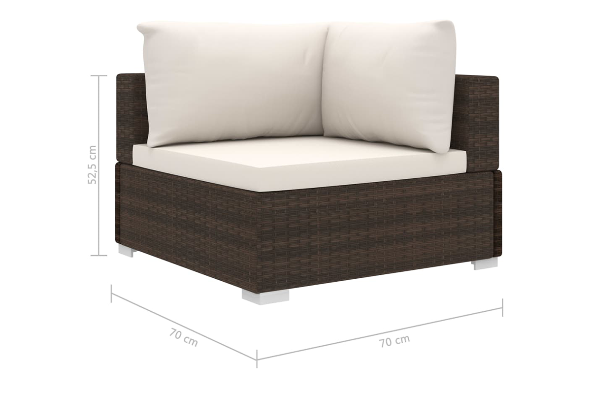 - Wymiary narożnikowej sofy: 70 x 70 x 52,5 cm (szer. x gł. x wys.)