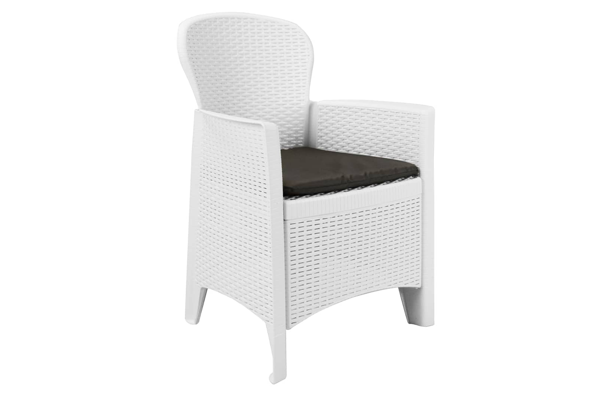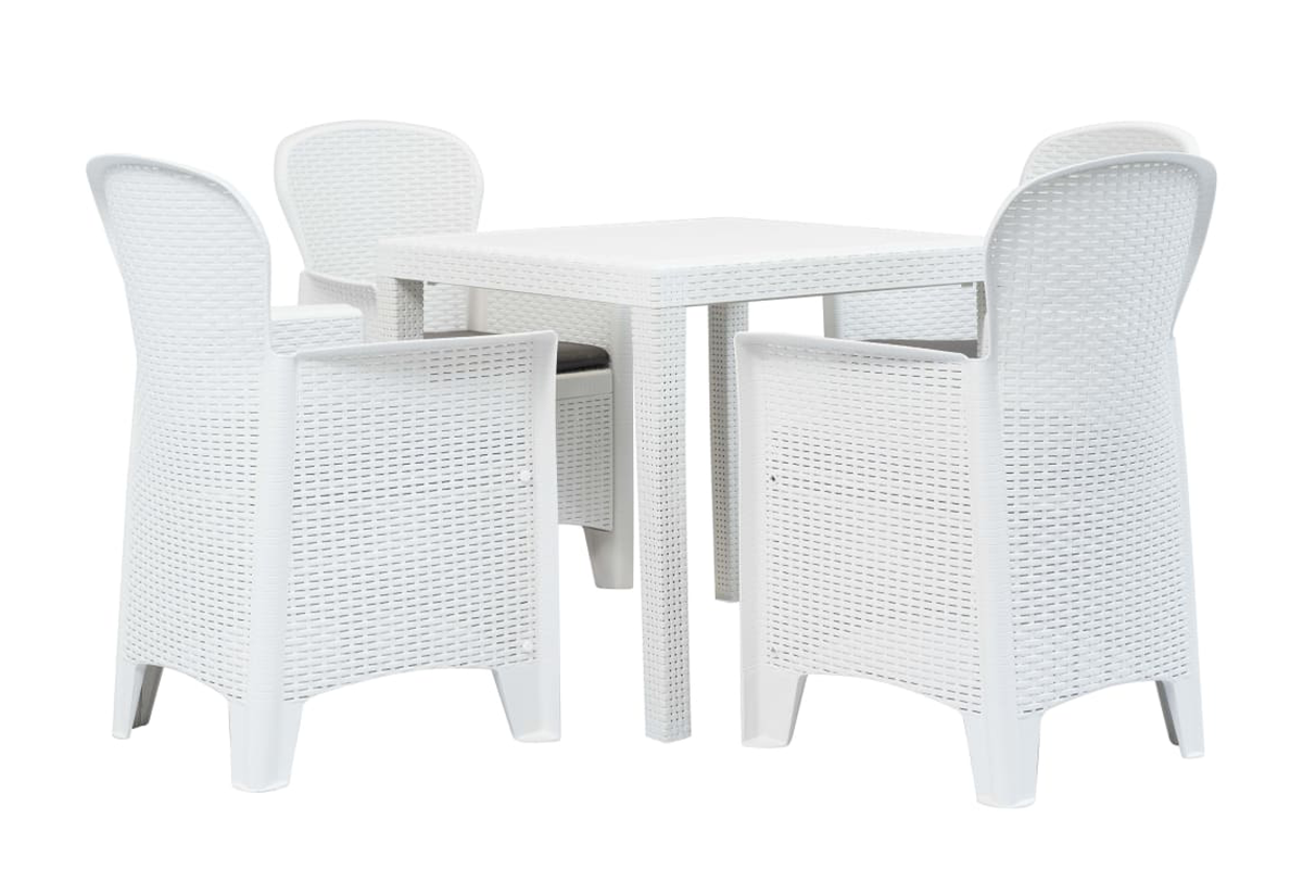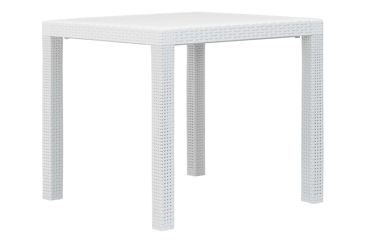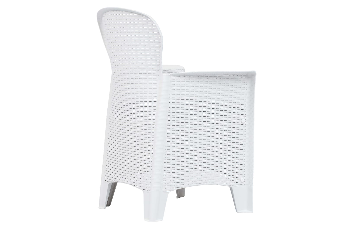 Nasz zestaw jadalniany zdecydowanie będzie znakomitym wyborem do spożywania posiłków na świeżym powietrzu: w ogrodzie, na patio i na kempingu. Stylizowany na rattanowy zestaw wykonano z solidnego plastiku, co czyni go trwałym i wytrzymałym, a także odpornym na czynniki pogodowe i łatwym do czyszczenia. Stylizacja na rattan doda odrobinę naturalnego uroku do Twojej przestrzeni na zewnątrz.