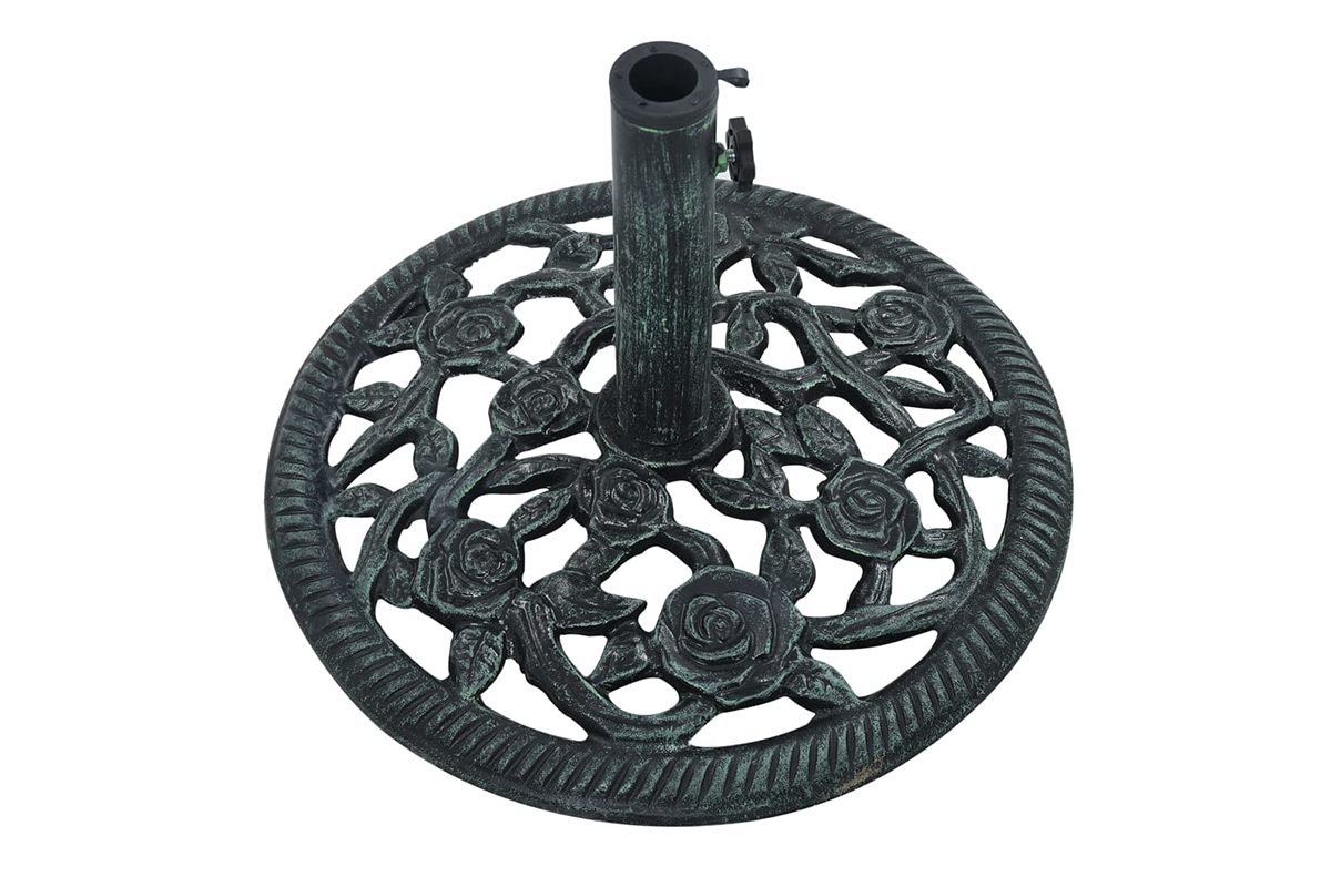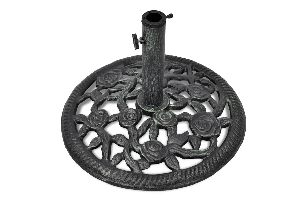 Ta solidna podstawa po parasol posłuży jako solidna i wytrzymała baza dla Twojego parasola. Wytrzymałe żeliwo zapewnia wyjątkową stabilność. Zawarty w zestawie adapter jest odpowiedni dla słupków od parasola o średnicach 35, 38 or 48 mm. Bogato zdobiony ornament i uroczy kwiatowy wzór doda klasy Twojemu ogrodowi lub innej przestrzeni.