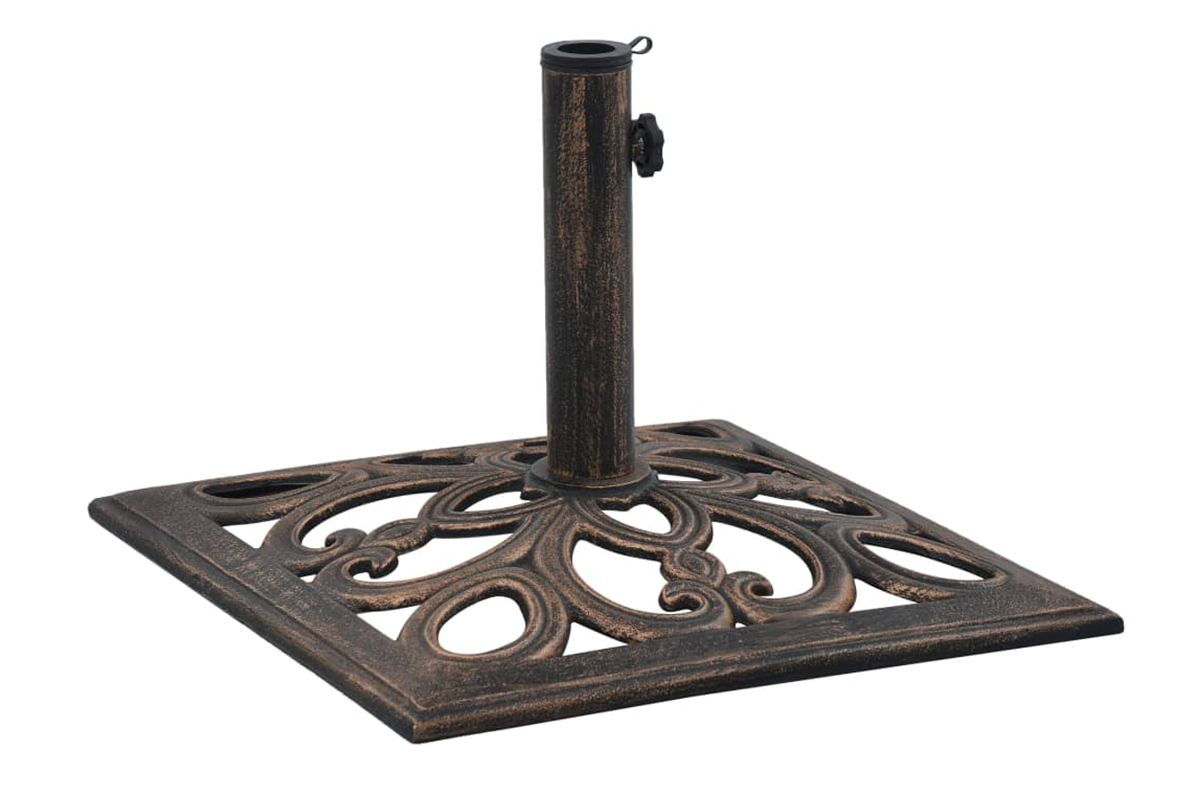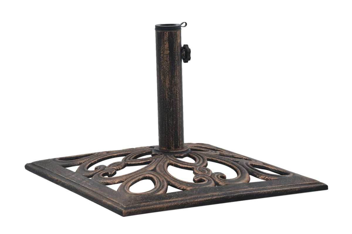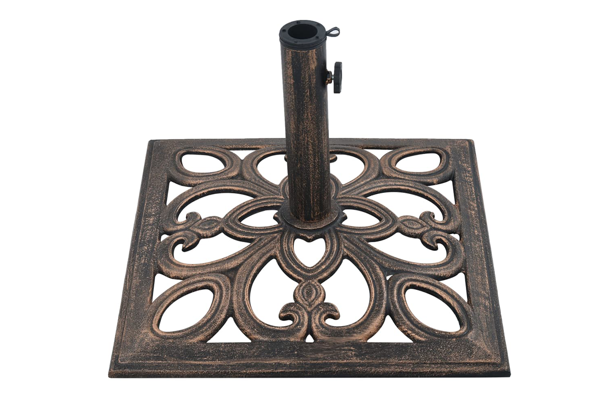 Ta solidna podstawa po parasol posłuży jako solidna i wytrzymała baza dla Twojego parasola. Wytrzymałe żeliwo zapewnia wyjątkową stabilność. Zawarty w zestawie adapter jest przeznaczony do słupków parasolowych o średnicach 35, 38 lub 48 mm. Bogata ornamentyka i uroczy, kwiatowy wzór doda klasy do Twojego ogrodu lub innej przestrzeni na zewnątrz.