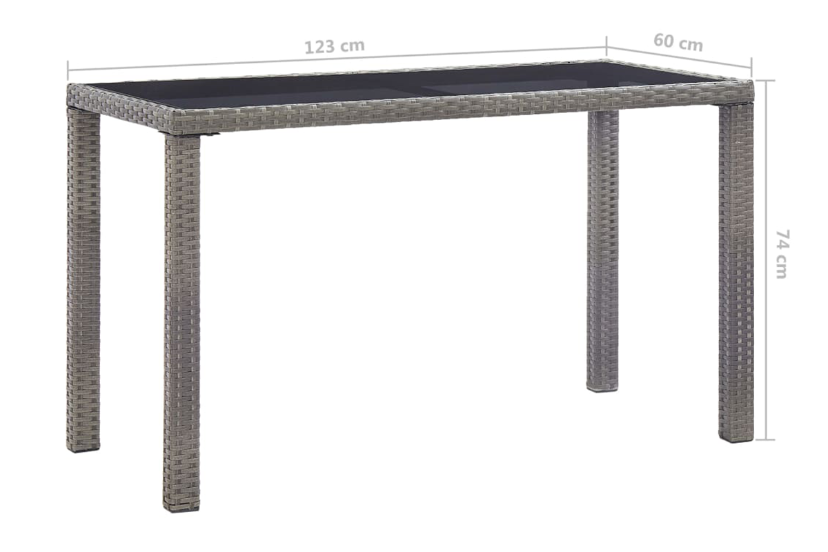 Ten stół ogrodowy będzie znakomitym dodatkiem do Twojej przestrzeni na zewnątrz. Wniesie odrobinę nowoczesnej elegancji do Twojego ogrodu lub na taras dzięki prostej, a zarazem stylowej formie. Wykonany z odpornego na czynniki pogodowe oraz wodę rattanu PE stół jest łatwy w czyszczeniu, solidny i przystosowany do codziennego użytku. Malowana proszkowo stalowa rama sprawia, że jest on wytrzymały i trwały.