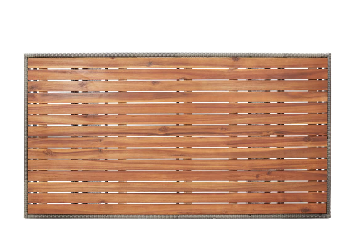 - Materiał korpus: lite drewno akacjowe, rattan PE, stal