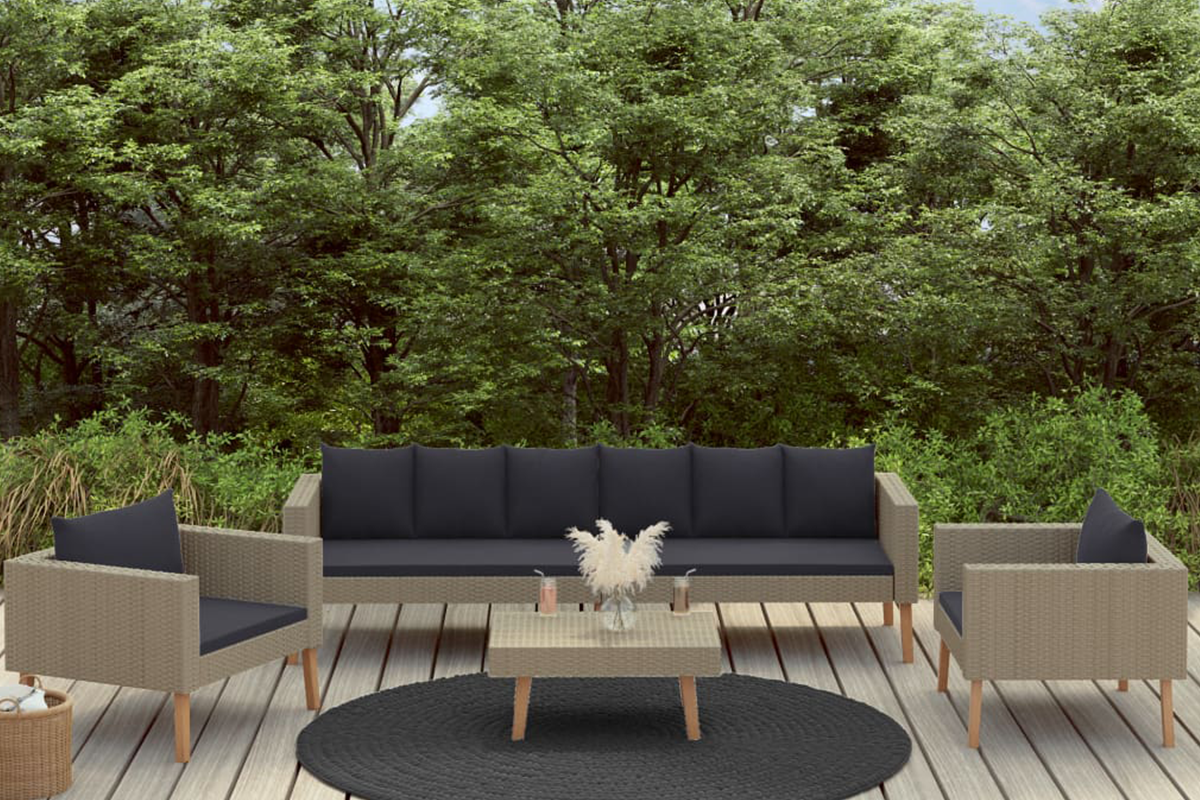 Ciesz się odprężającym, słonecznym popołudniem lub letnim wieczorem ze swoją rodziną lub znajomymi na tarasie, w ogrodzie albo na patio za sprawą tego zestawu wypoczynkowego ze stolikiem! Ten komplet wypoczynkowy składa się z ramy z malowanej proszkowo stali z trwałym rattanem PE, dzięki czemu jest mocny, wytrzymały i łatwy do czyszczenia.