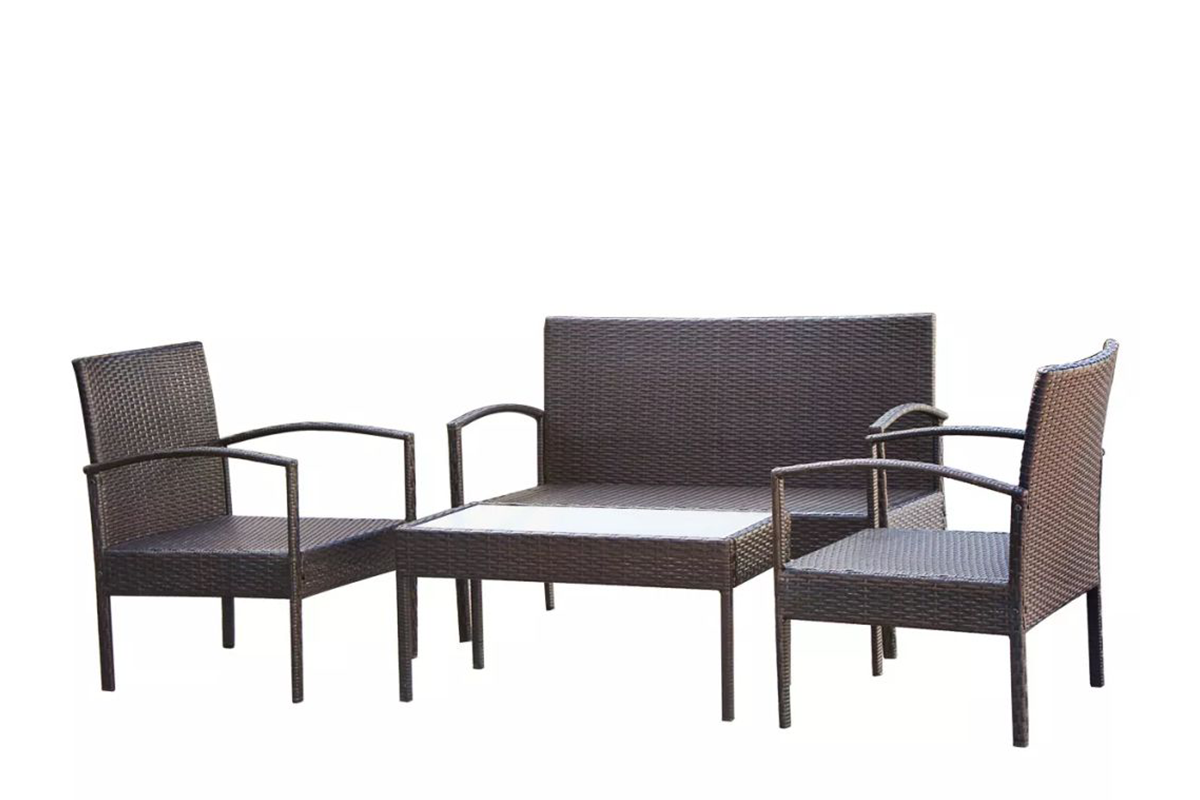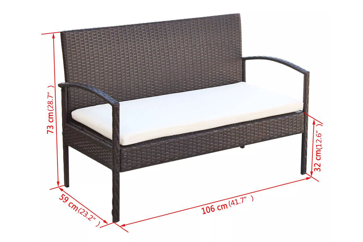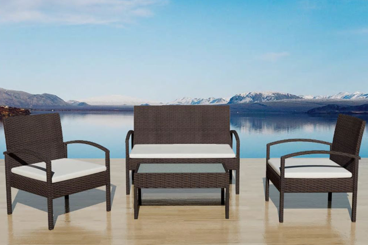 Zestaw mebli do ogrodu będzie znakomitym dodatkiem do przestrzeni na zewnątrz. Wniesie odrobinę nowoczesnej elegancji do Twojego patio lub ogrodu dzięki prostej, ale stylowej formie. Wykonany z wodoszczelnego i odpornego na czynniki pogodowe rattanu PE zestaw jest łatwy w czyszczeniu, mocny i odpowiedni do codziennego użytku. Kryte proszkowo stalowe ramy sprawiają, że sofa, fotele i stolik są mocne i trwałe.