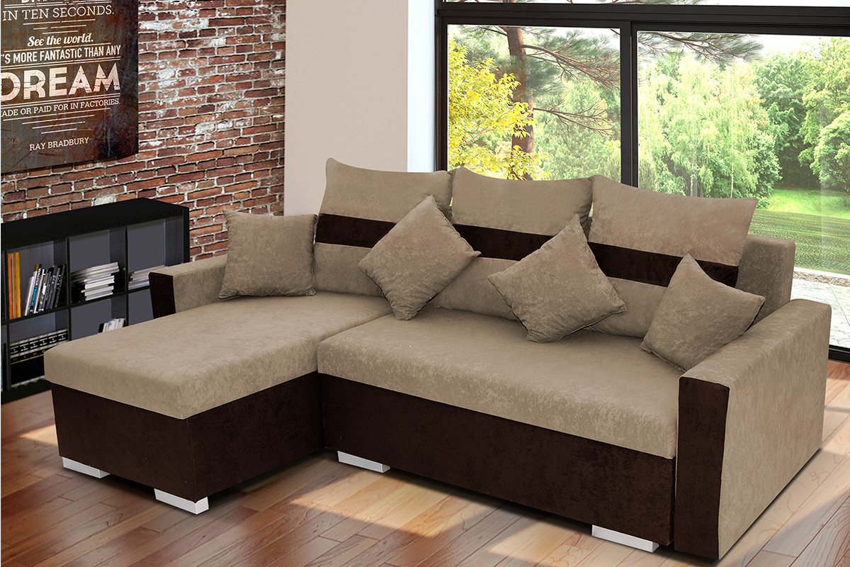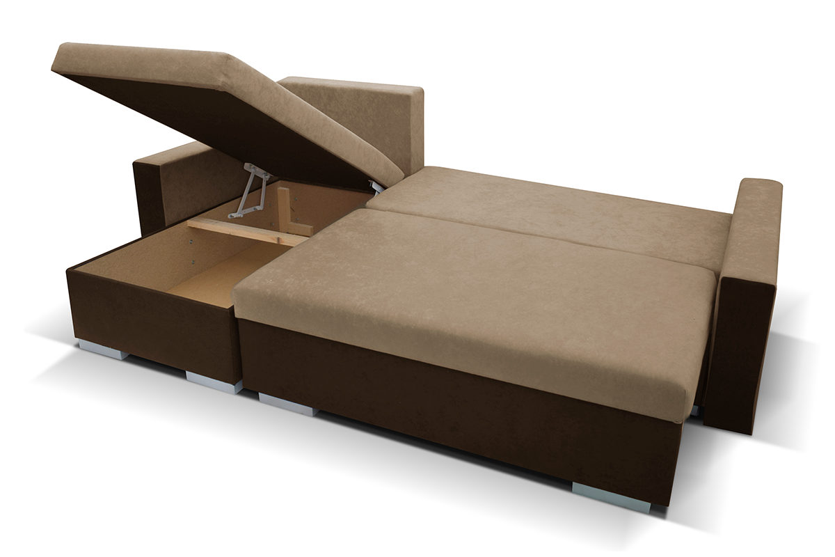 Narożniki z kolekcji NEVOS wyposażone są w funkcję spania oraz w dwie duże skrzynie na pościel. Mebel ten idealnie sprawdzi się jako miejsce do spania dla gości, ale dzięki łatwemu systemowi otwierania nadaje się także do spania na co dzień. Bryła mebla jest prosta, dzięki czemu doskonale wkomponuje się w każde wnętrze, a całość subtelnie urozmaica dwukolorowy design.