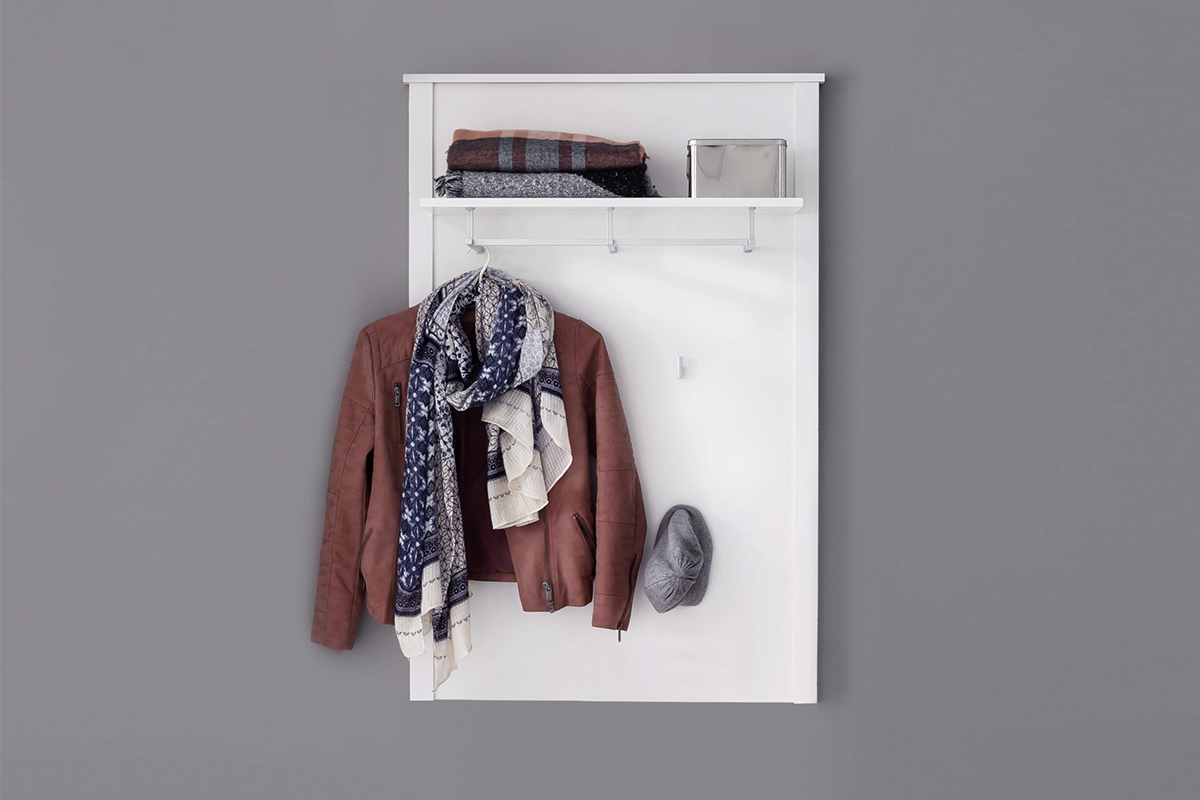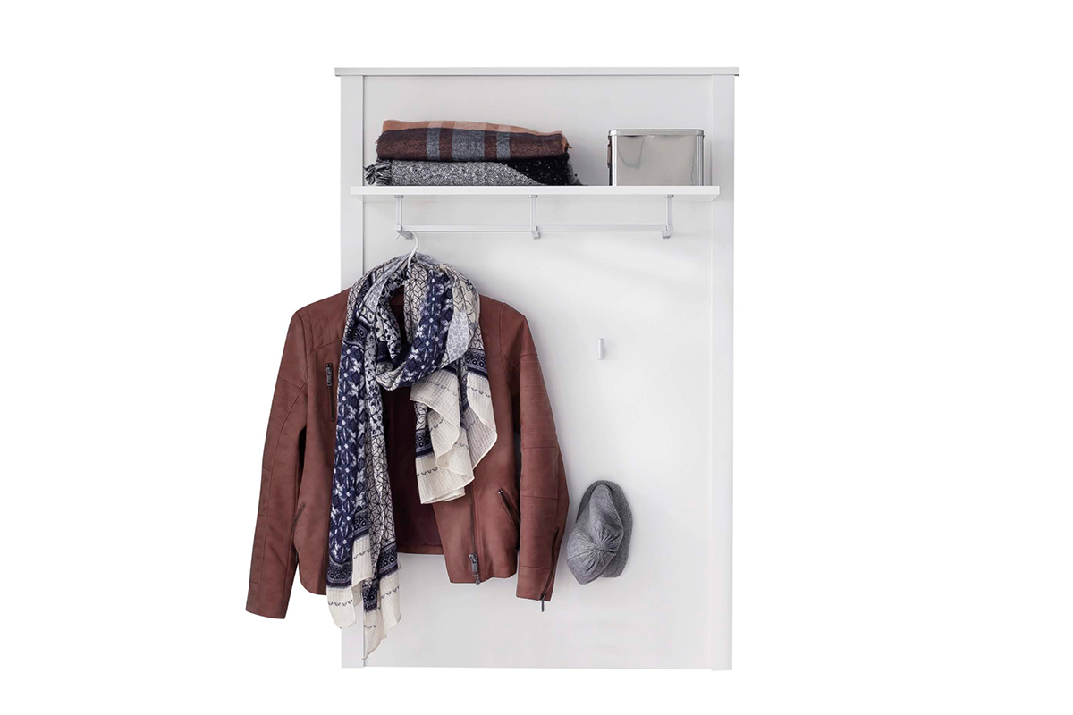 Kompleksowym rozwiązaniem do przechowywania w przedpokoju jest biały, wieszak ścienny, który sprawdzi się w przypadku zimowych kurtek, płaszczy, parasoli, czapek i kapeluszy. Meble z przeznaczeniem do zawieszania to dobry wybór zwłaszcza dla posiadaczy małych mieszkań lub wąskich korytarzy w wejściu do domu.