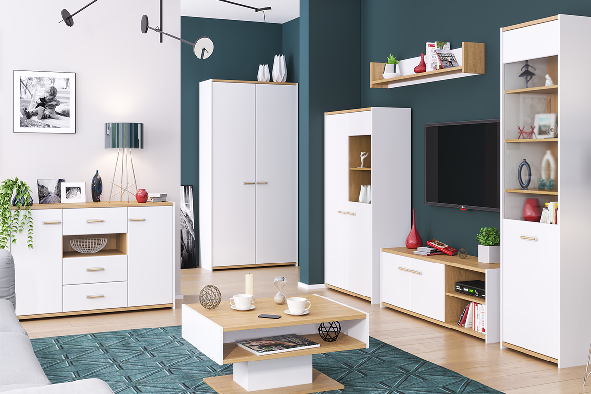 ANTHO, https://dev1-mda.konsimo.pl/kolekcja/antho/ Witryna biały/dąb naturalny - zdjęcie