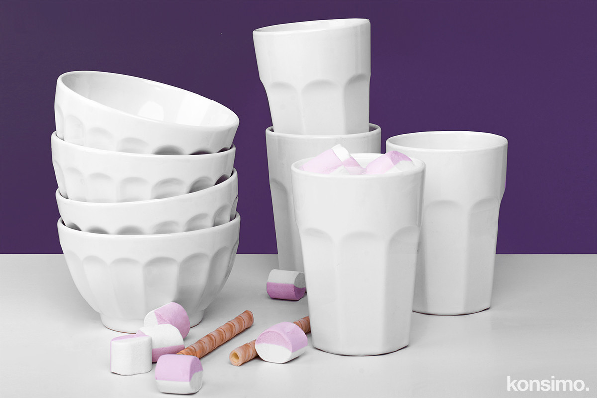 W zestawie znajduje się wyjątkowy kubek, który pomieści 480 ml napoju oraz piękna miska o pojemności 500 ml . Zestaw jest do dostępny w jednym z pięciu niepowtarzalnych kolorów.