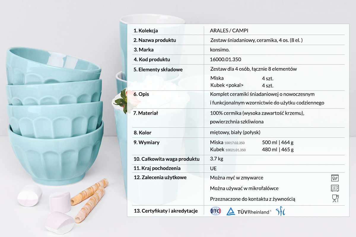 ARALES, CAMPI zobacz całą kolekcję Zestaw śniadaniowy, 4 os. - kolor miętowy