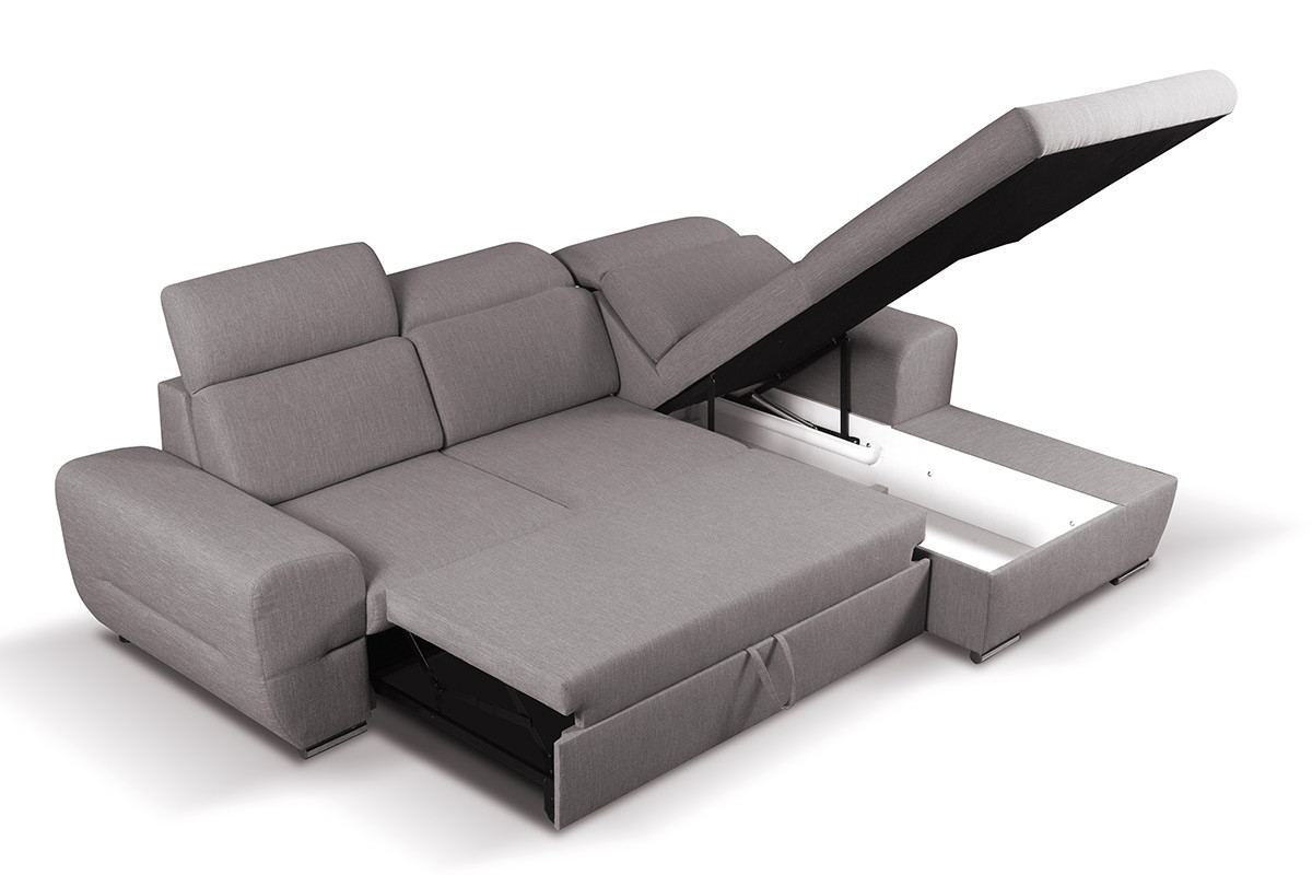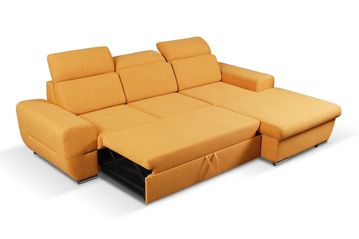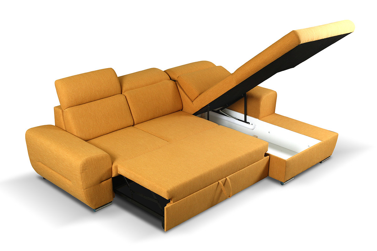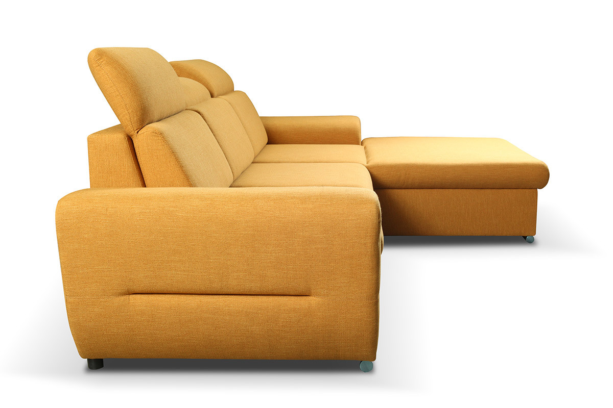 Narożnik EDRES prawy jest nie tylko elegancki i stylowy, lecz praktyczny i wygodny. Posiada funkcję spania i pojemnik na pościel. Niezawodny automat ułatwia jego rozkładanie.Zarówno stelaż, jak i obicie wykonane są z wysokiej jakości materiałów. Tapicerka jest trwała, odporna na ścieranie i zabrudzenia.Dostępny jest tutaj w wersji prawej, w czterech modnych kolorach: żółtym, szarym, granatowym i beżowym.