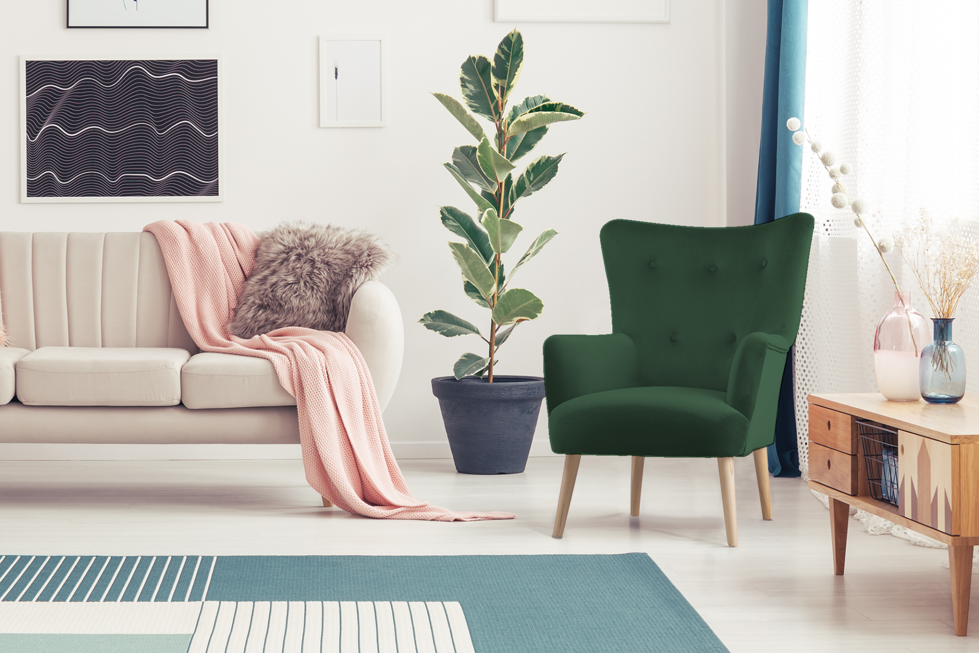 Fotel marki Konsimo z kolekcji ACRIDO to propozycja mebla nawiązującego do klasycznego kształtu fotela typu uszak. Skutecznie ożywi on aranżację każdego pokoju dziennego. Fotel wyróżnia oryginalne pikowanie wraz z geometrycznymi przeszyciami na oparciu. Takie rozwiązanie nadaje fotelowi lekkości i szyku, co w połączeniu z prostymi nóżkami z drewna sprawia, że całość prezentuje się niezwykle elegancko.