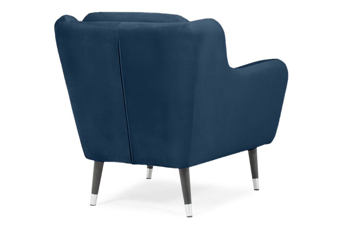Fotel Afos to połączenie eleganckich materiałów i tradycyjnego kształtu. Mebel wykonany jest z połyskującej tapicerki w odcieniu granatu, wykończony nogami z ciemnego drewna z metalowymi kielichami. Takie połączenie daje nam elegancki fotel idealny do salonu, gabinetu, czy też sypialni.