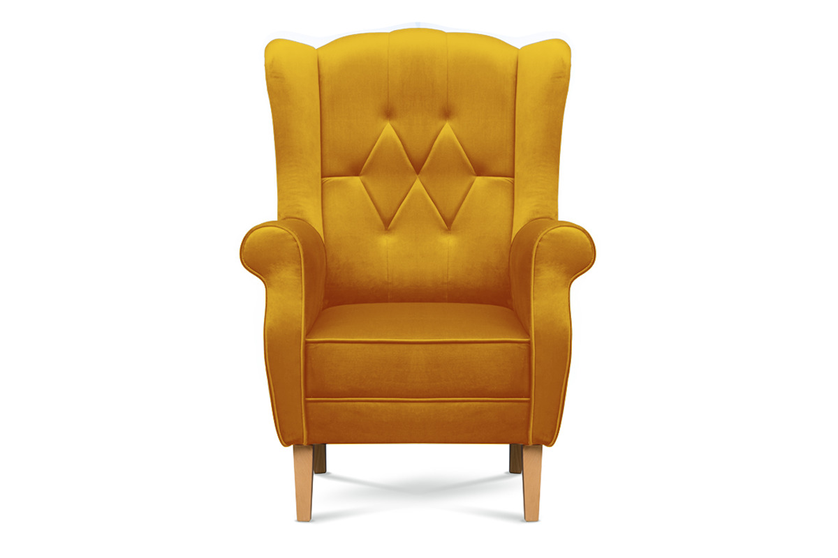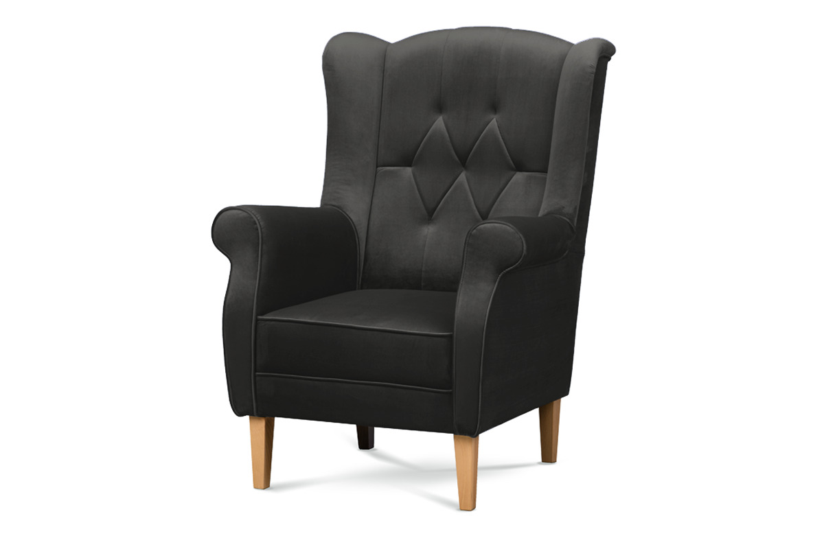 Fotel marki Konsimo z kolekcji NIROS został zaprojektowany tak, aby wyglądem nawiązywał do tradycyjnych foteli typu uszak. Jego kształt jest jednak prostszy, ponieważ uszka są jedynie delikatnie wysunięte do przodu – takie rozwiązanie nadaje mu pożądanej lekkości. Dodatkowo smukłe i wysokie na 18 cm, naturalne nóżki z drewna nie tylko ułatwiają sprzątanie, ale również doskonale współgrają z całą konstrukcją fotela.