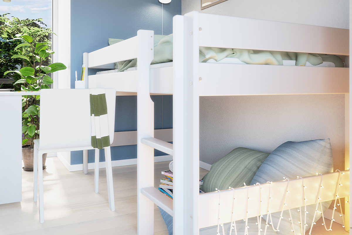 NICE zobacz całą kolekcję Łóżko piętrowe ze stelażem - kolor biały