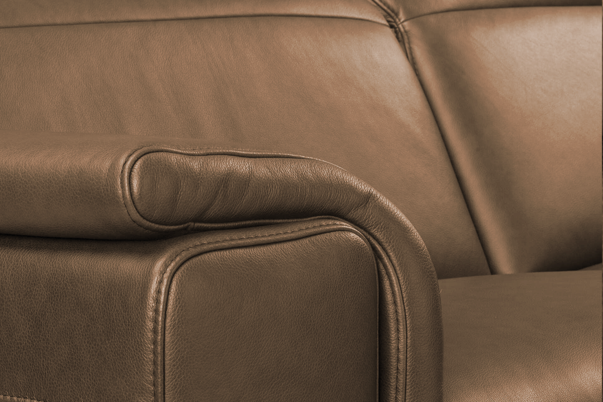 Duży narożnik ze skóry występuje w dwóch ponadczasowych kolorach, które będą pasować do większości aranżacji wnętrz - klasycznej czerni oraz trendowym odcieniu ciepłego brązu. Dodatkowo dostępne są dwa typy skórzanego narożnika - pierwsza wersja premium z regulowanymi ręcznie zagłówkami i elektrycznie podnoszonym siedziskiem oraz druga, ekonomiczna z regulacją manualną poduszek pod głowę.