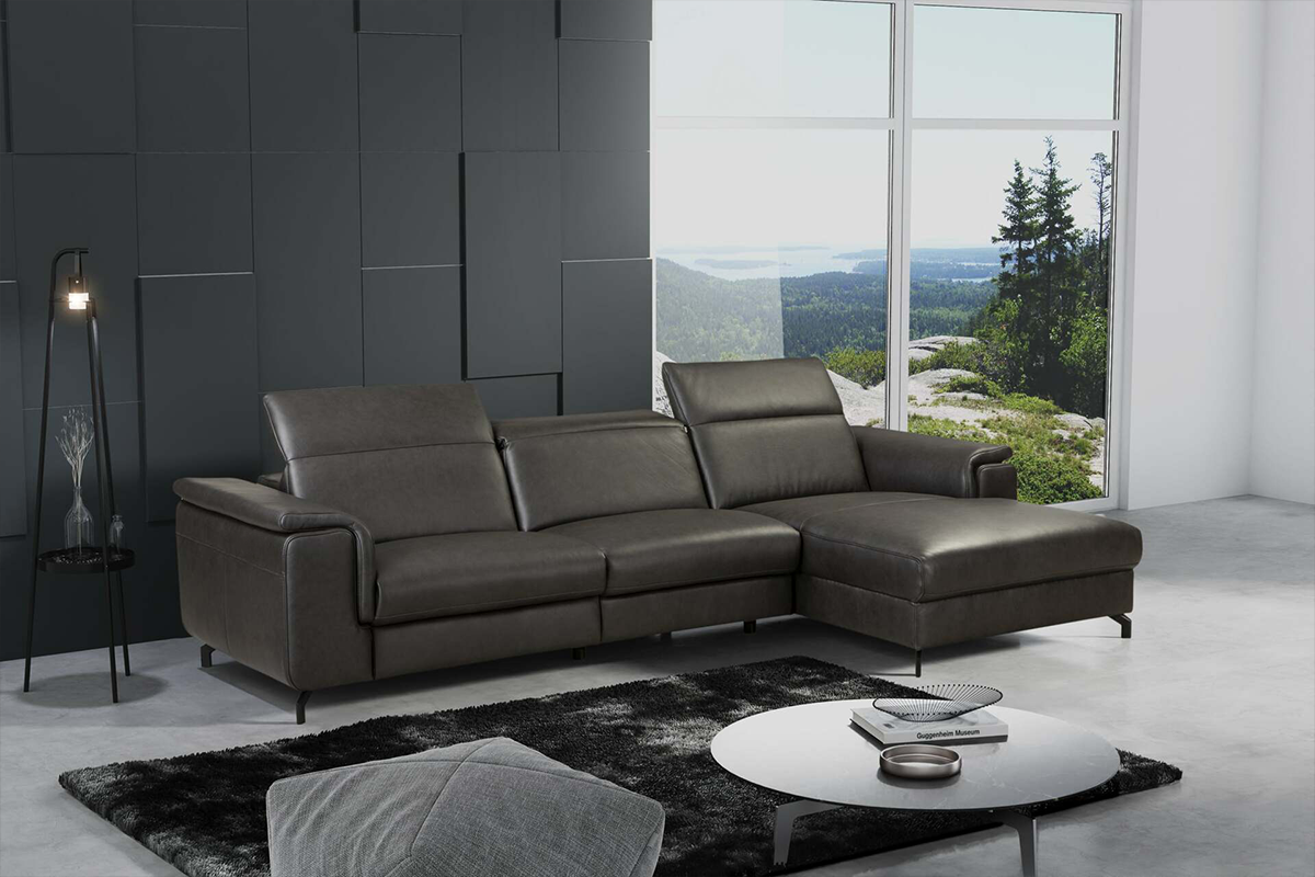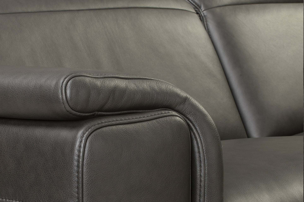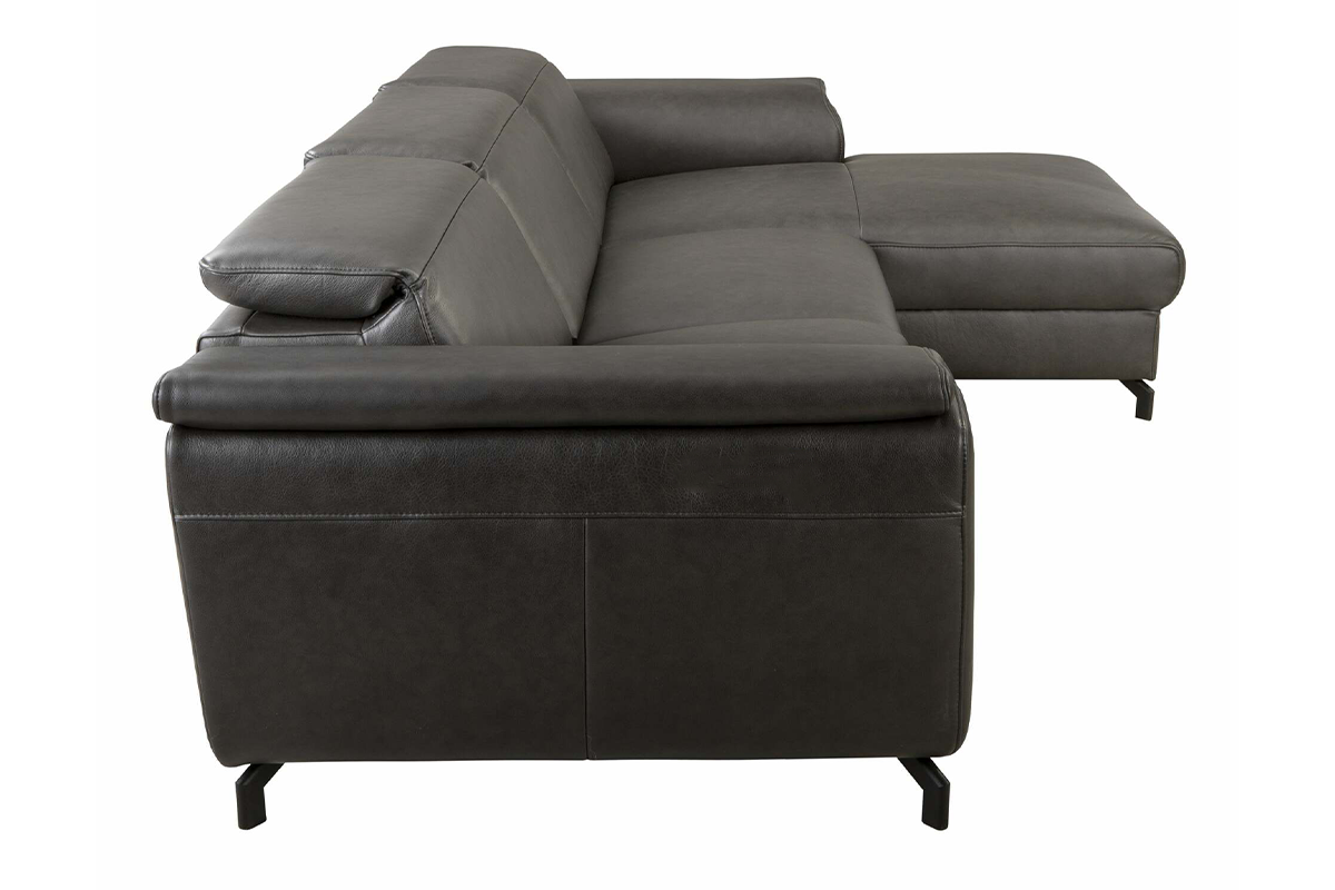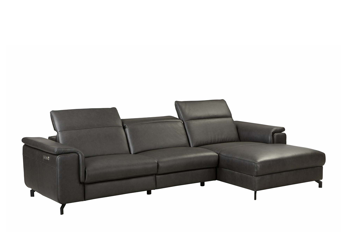 Duży narożnik ze skóry występuje w dwóch ponadczasowych kolorach, które będą pasować do większości aranżacji wnętrz - klasycznej czerni oraz trendowym odcieniu ciepłego brązu. Dodatkowo dostępne są dwa typy skórzanego narożnika - pierwsza wersja premium z regulowanymi ręcznie zagłówkami i elektrycznie podnoszonym siedziskiem oraz druga, ekonomiczna z regulacją manualną poduszek pod głowę.