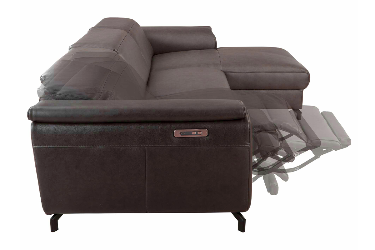 Duży narożnik ze skóry występuje w dwóch ponadczasowych kolorach, które będą pasować do większości aranżacji wnętrz - klasycznej czerni oraz trendowym odcieniu ciepłego brązu. Dodatkowo dostępne są dwa typy skórzanego narożnika - pierwsza wersja premium z regulowanymi ręcznie zagłówkami i elektrycznie podnoszonym siedziskiem oraz druga, ekonomiczna z regulacją manualną poduszek pod głowę.