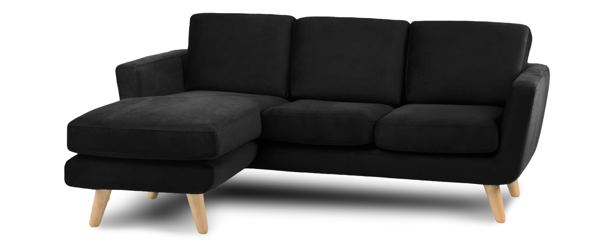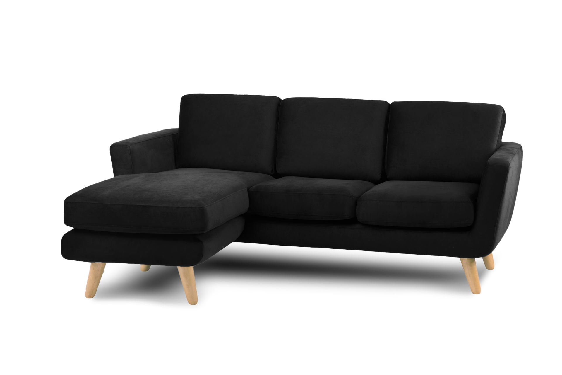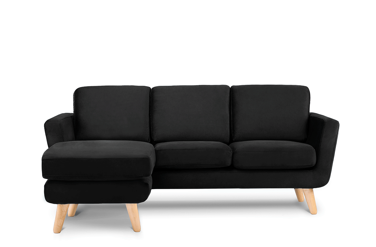 TAGIO zobacz całą kolekcję Czarny skandynawski narożnik z pufą / otomaną lewy - kolor czarny