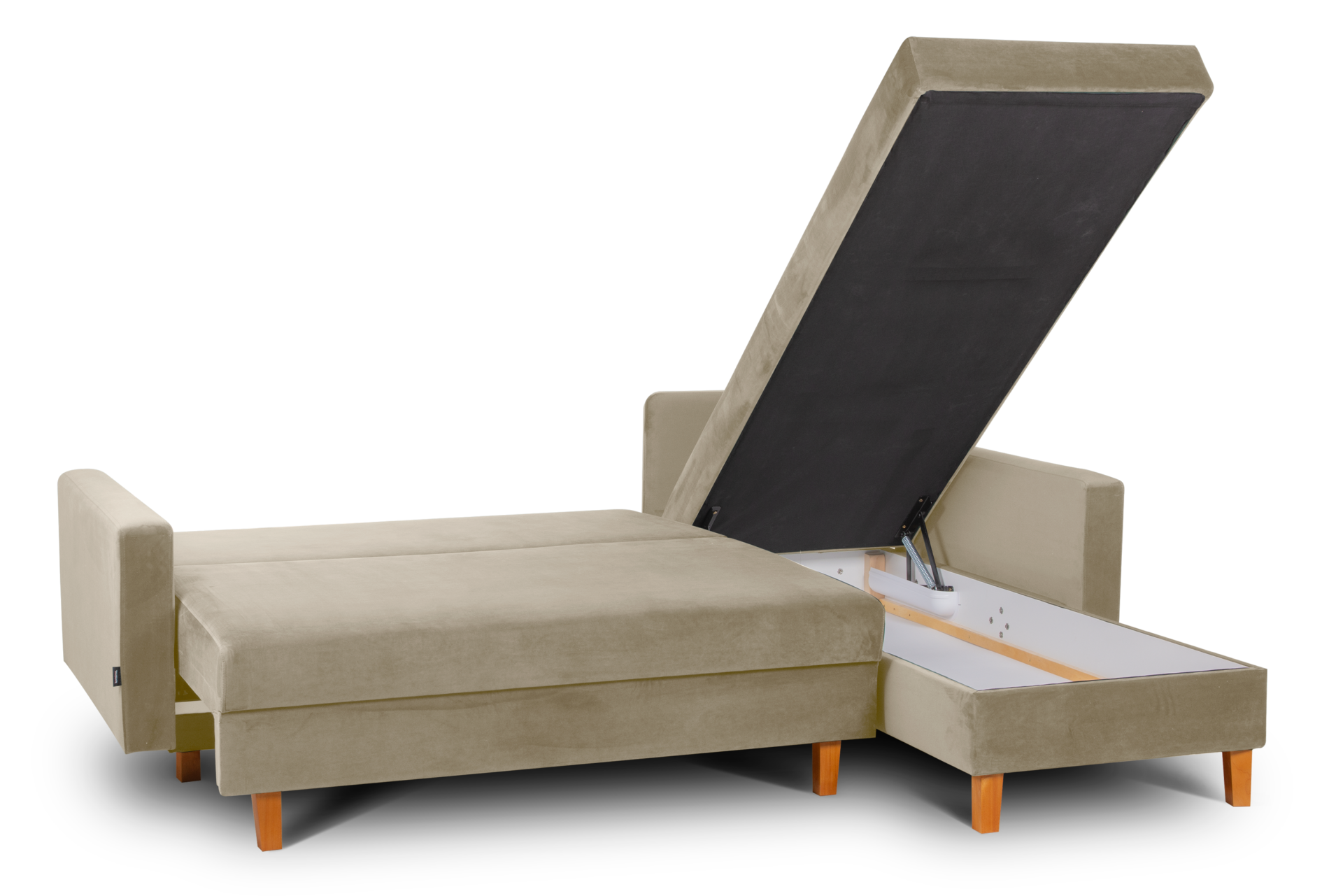 Duży pojemnik na pościel z wywietrznikami pomieści wszystko, co trzeba schować w dzień, a co potrzebne jest w nocy. Wysokiej jakości tkanina pleciona wyróżnia się odpornością na ścieranie i uszkodzenia, a do tego jest łatwa do utrzymania w czystości. Poduszki oparciowe i dekoracyjne posiadają suwaki w tunelach, dzięki którym pokrowce można łatwo zdjąć i uprać. Ten funkcjonalny narożnik skandynawski jest wyjątkowo wygodny i praktyczny – sprawdzi się nie tylko w domu, ale też w hotelu czy poczekalni.