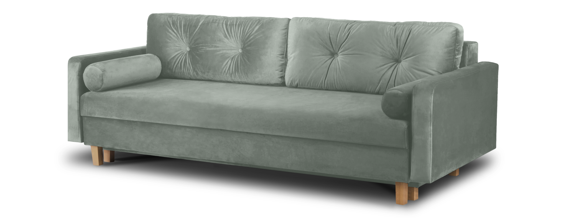 Dwie poduszki oparciowe i dwie dekoracyjne podnoszą komfort użytkowania tej nowoczesnej sofy. Dzięki suwakom ukrytym w estetycznych tunelach pokrowce można łatwo zdjąć i szybko uprać. Komfort zapewnia średnio twarde siedzisko z listwy sprężynowej, ovaty i pianki poliuretanowej. Ta nowoczesna skandynawska kanapa sprawi, że wszyscy poczują się zrelaksowani i swobodni!Skandynawska, trzyosobowa sofa ERISO to znakomita propozycja dla wszystkich ceniących sobie meble najwyższej jakości oraz ich niepowtarzalną estetykę. Materiał, z którego została wykonana, jest przyjemny w dotyku, co gwarantuje komfort wypoczynku oraz snu – kanapę można rozłożyć, dzięki czemu zyskujemy dodatkową przestrzeń do spania. Piękny kolor tapicerki i skandynawski styl idealnie dopełni każde wnętrze, swoim niepowtarzalnym charakterem. Świetnie wpisze się w minimalistyczny wystrój salonu. Drewniane nóżki i materiał najwyższej jakości dodają sofie Eriso elegancji i podkreślają jej skandynawski styl. Cała konstrukcja jest stabilna, a mebel wytrzymały, dzięki czemu powinien długo służyć. Tapicerka jest częściowo odporna na zabrudzenia, a samo czyszczenie nie powinno stanowić większych problemów. Rozkładana sofa posiada dużą powierzchnię spania (na której swobodnie mogą zasnąć dwie osoby) oraz pojemnik na pościel. Sofa Eriso jest idealnym wyborem do salonu, sypialni czy pokoju dziennego.