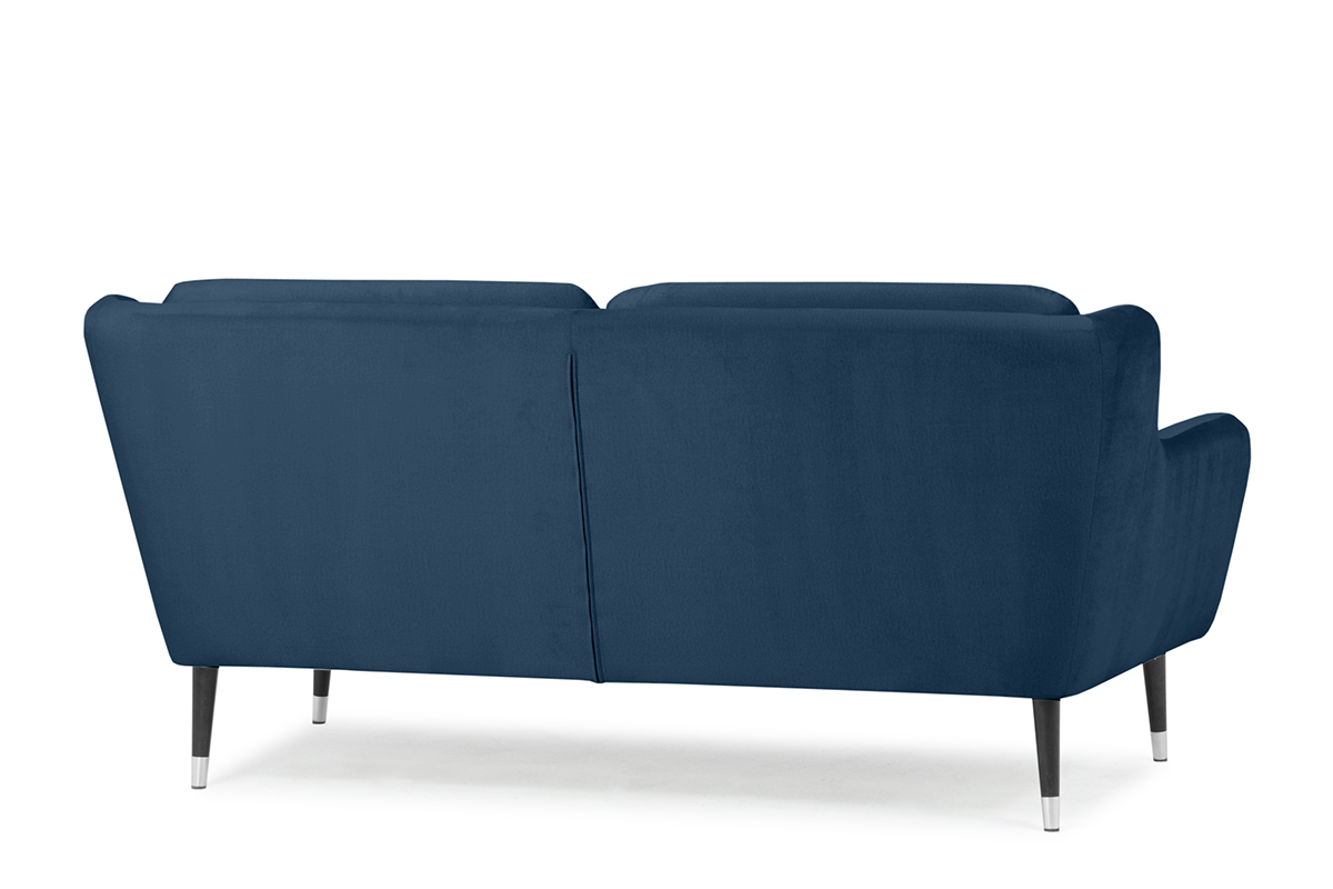 Elegancka sofa z błyszczącą tapicerką w granatowym kolorze w sam raz do eleganckich salonów. Ten ładny i wygodny mebel dobrze się prezentuje i jest wygodnym siedziskiem. Sofa do salonu Afos wykonana jest z wytrzymałej i elastycznej pianki, obitej gustownym, połyskującym materiałem, który jest odporny na ścieranie i plamy. Wewnętrzna część oparcia ozdobiona jest delikatnymi, poziomymi paskami.