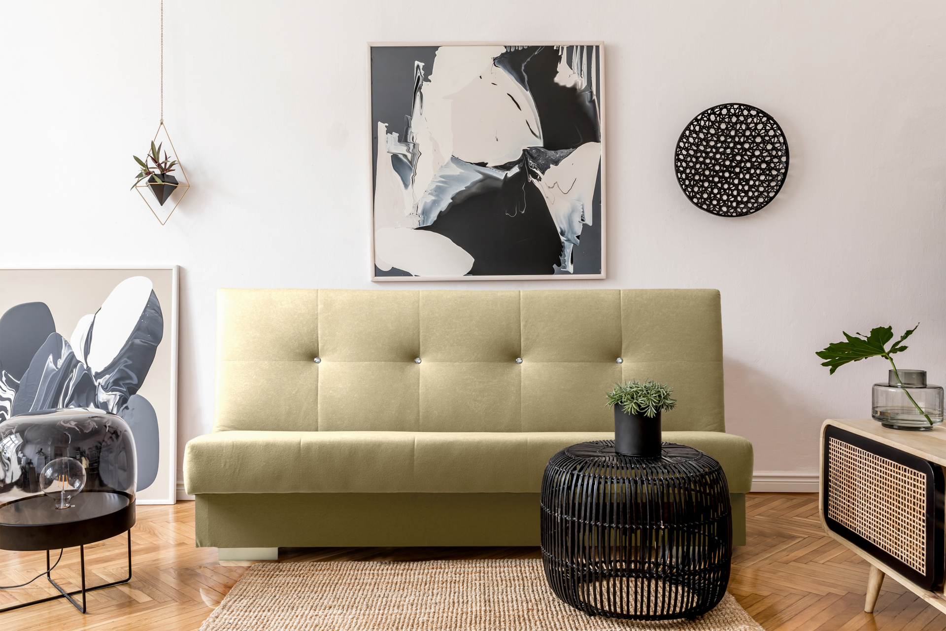 Wersalka z kolekcji MIGELI charakteryzuje się prostą konstrukcją, ale jednocześnie prezentuje się bardzo elegancko. Wszystko dzięki pikowaniu z wykorzystaniem błyszczących się kryształków, a także dzięki przeszyciom tworzącym siatkę prostokątów. Te proste zdobienia nadają całości szyku i blasku.