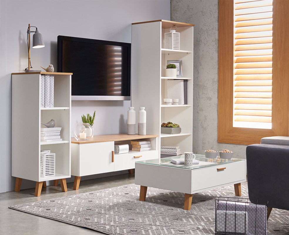 Meble skandynawskie do salonu to jeden z najgorętszych trendów wnętrzarskich ostatnich lat. Coraz więcej osób decyduje się na proste, minimalistyczne meble, które doskonale komponują się z nowoczesnym sprzętem RTV – który z kolei umieszczamy w salonie czy pokoju dziennym. Meble do salonu w stylu skandynawskim to formy pozbawione niepotrzebnych zakamarków, bardzo łatwe do utrzymania w czystości. Co więcej – pomimo swojej prostoty, styl skandynawski wciąż wprowadza do mieszkania odrobinę ciepła i swobodnego nastroju, tak istotnych podczas codziennego wypoczynku w salonie. Dzieje się to dzięki wykorzystaniu jasnych barw i naturalnego drewna w produkcji tych mebli. Nasze meble w stylu skandynawskim do salonu to najwyższa jakość w atrakcyjnej cenie – serdecznie zapraszamy do sprawdzenia aktualnego asortymentu.